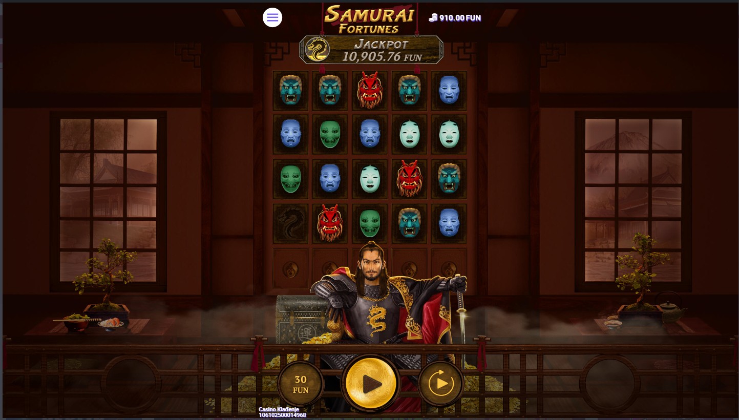 Zakorači u svijet borbenih samuraja i otkrij svoje samurajske sreće u slot igri Samurai Fortunes! Ova napeta i uzbudljiva igra providera 7777 smještena u Japanu nudi bogate nagrade kroz 5 bubnjeva i 4 reda, a svaki spin može donijeti nevjerojatne pobjede. Besplatne vrtnje i progresivni jackpot donose ti pravu adrenalinsku avanturu. S borbenim samurajima i njihovim legendarnim mačevima, Samurai Fortunes pruža ti šansu za osvajanje ogromnih nagrada u borbi za sreću i čast!