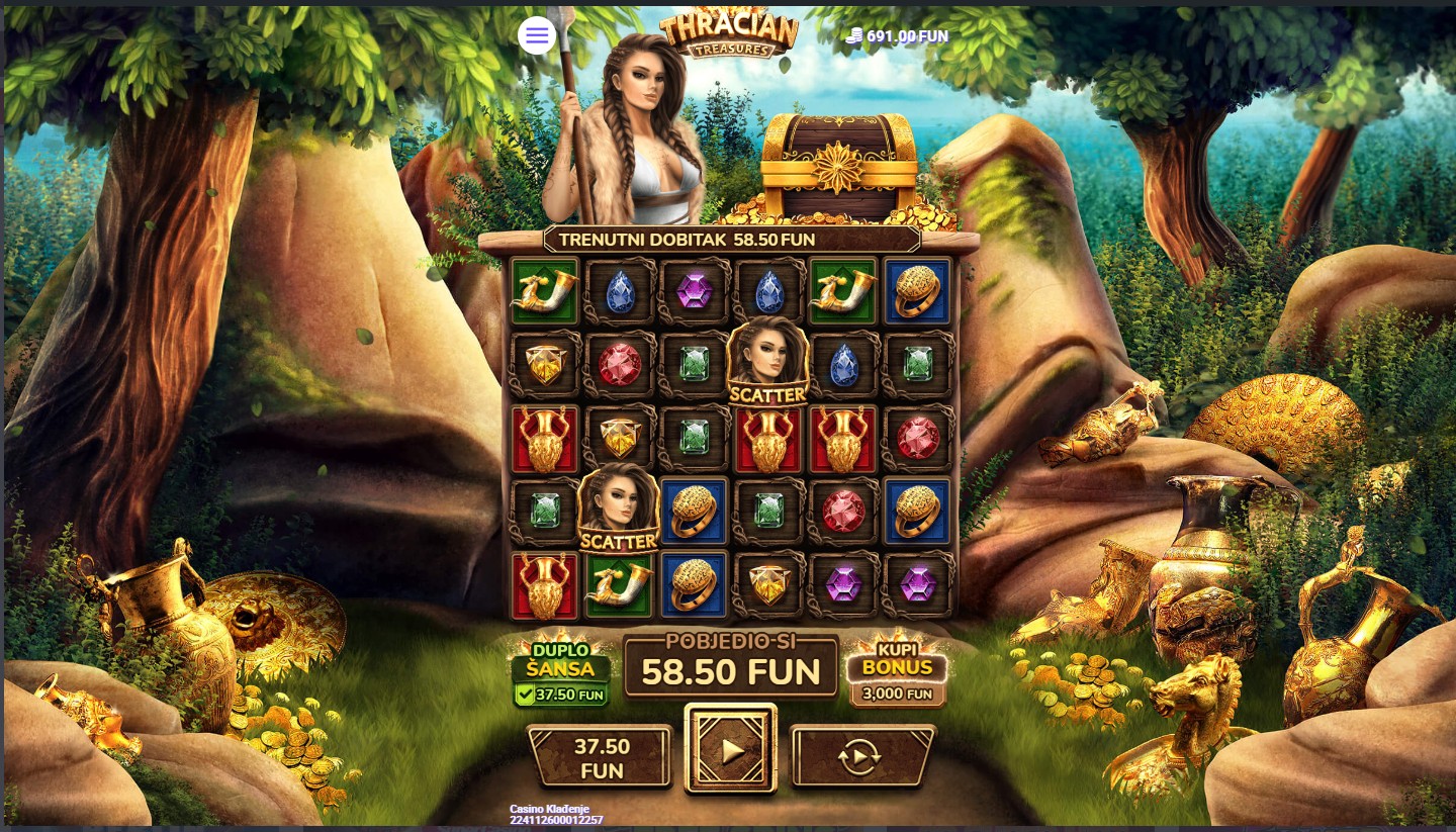Thracian Treasures se igra na 6 bubnjeva i 5 redova. Dobitne kombinacije broje se s lijeva na desno. Četiri ili više Scatter simbola pokreću bonus besplatnih vrtnji, u kojima se mogu aktivirati multiplikatori, a tu je i dodatna bonus značajka multiplikatora i do 500x dobitka. Svaka vrtnja donosi priliku za dodatne nagrade. Spremi se za istraživanje drevnih blaga i otkrij bogatstva Trakije!