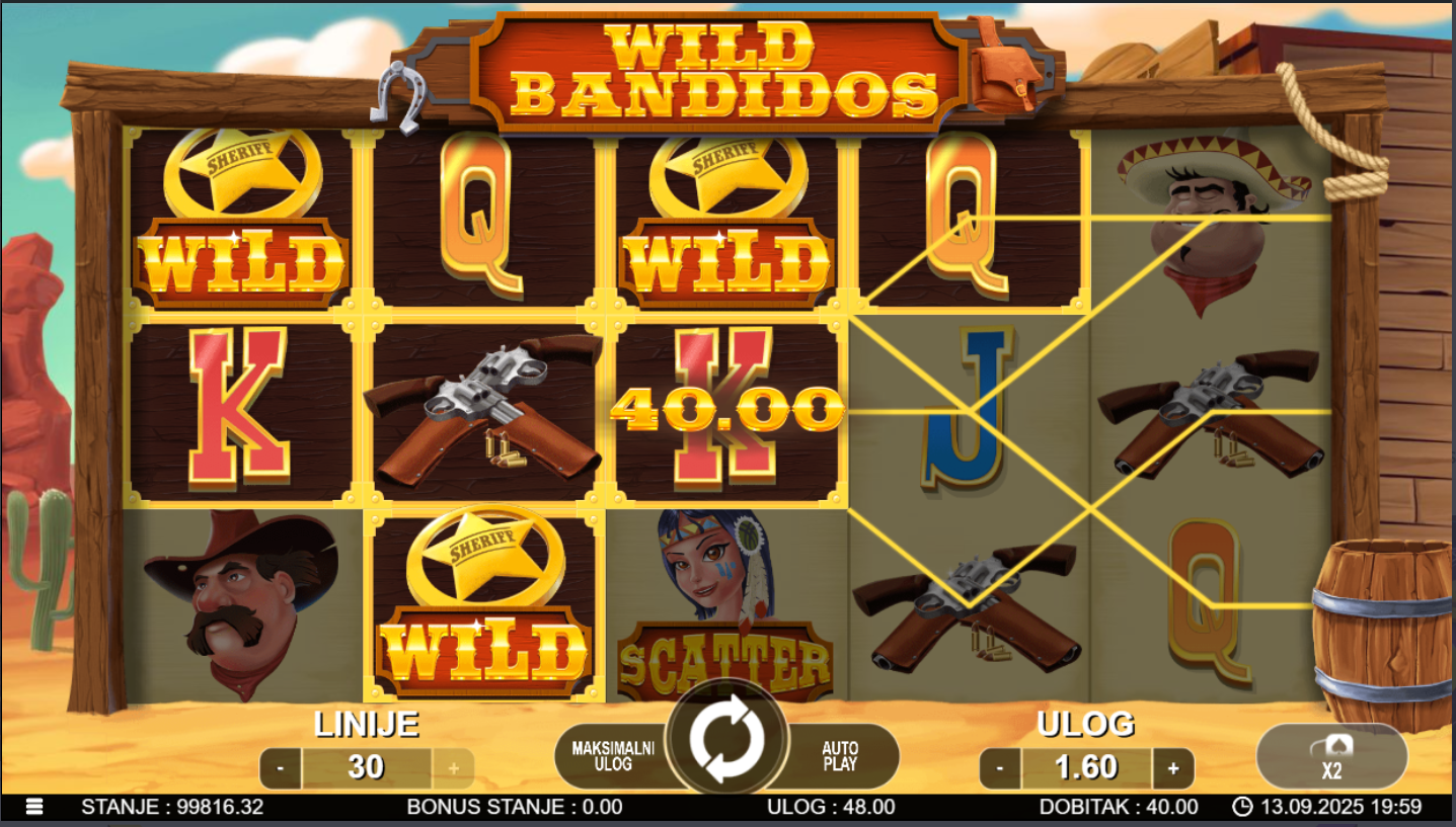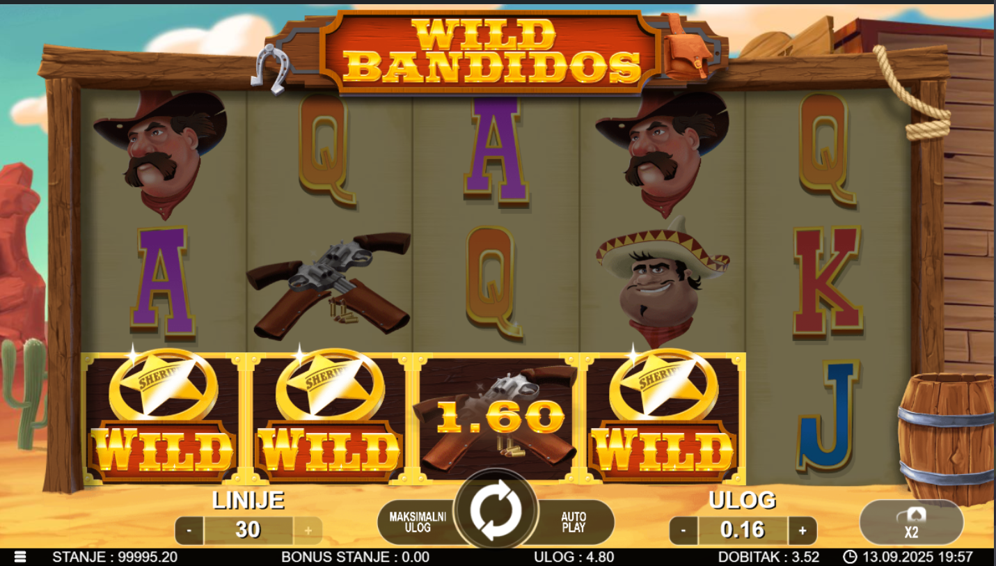 Wild Bandidos ima RTP 95,01% i srednju volatilnost!