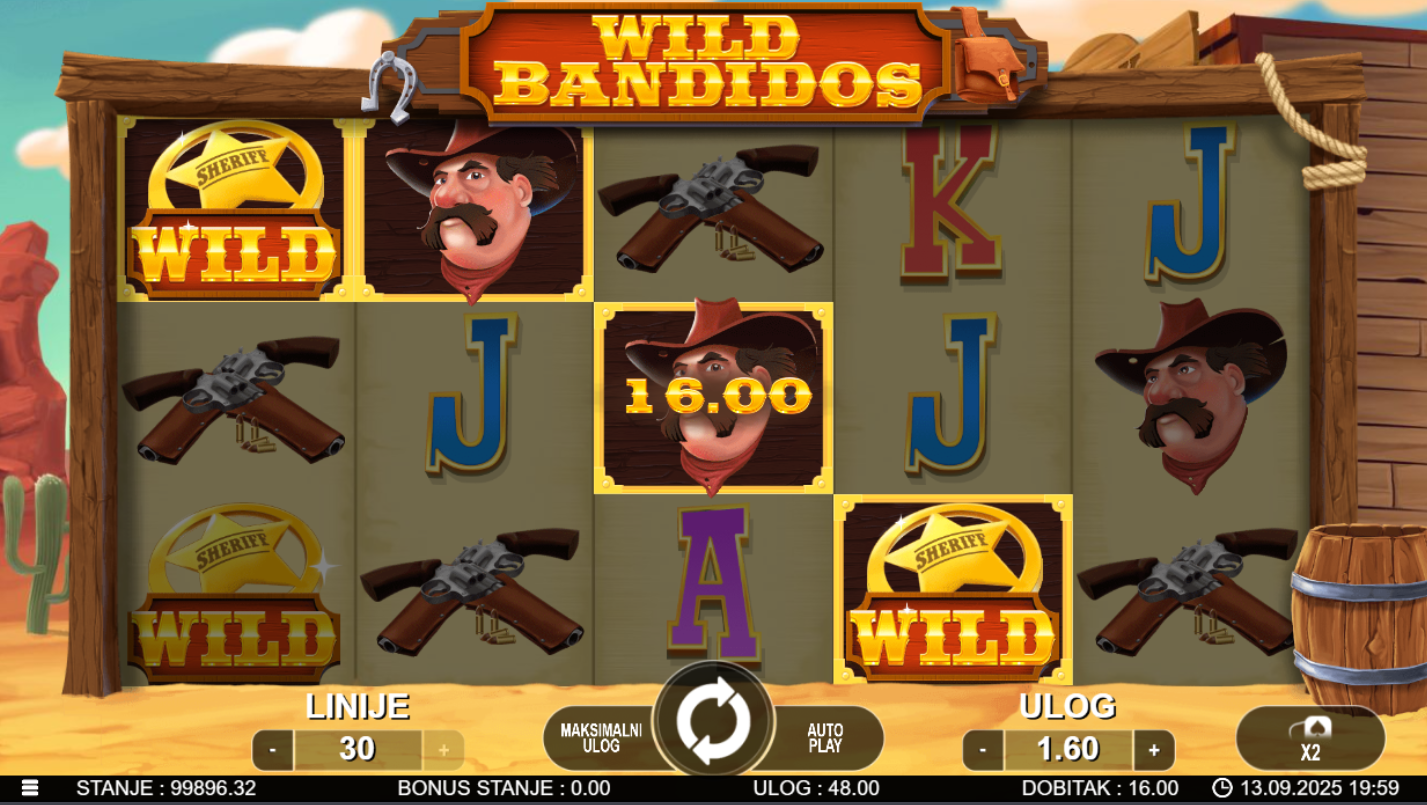 Wild Bandidos od Seven Mojos donosi igru punu revolveraša, sombrera i tipične western atmosfere. Na ekranu čekaju razbojnici, šareni simboli i brza glazba koja pojačava napetost. Svaki okret donosi novu dozu adrenalina!