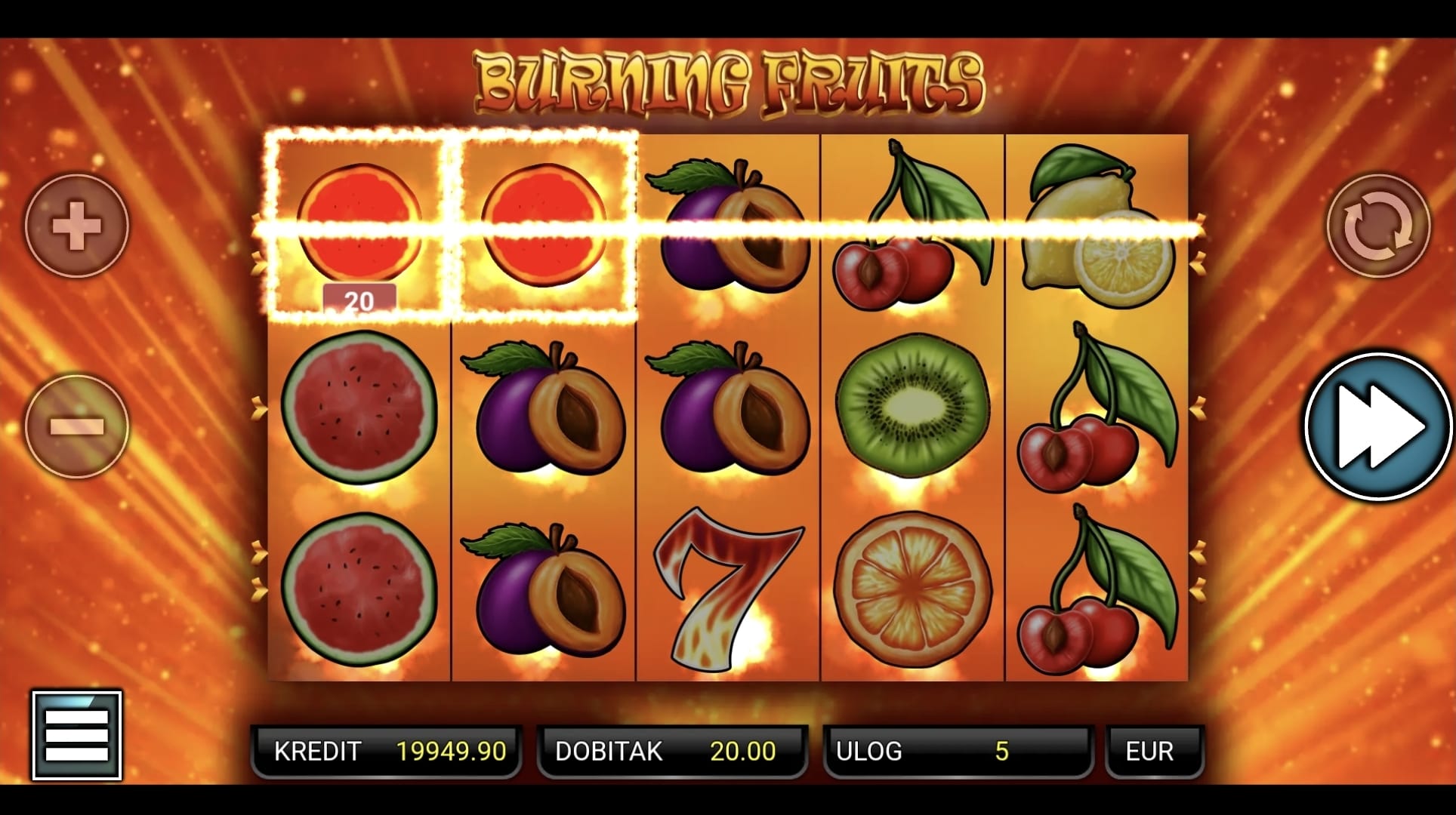 Igra Burning Fruits ima promjenjivi RTP koji se kreće u rasponu od 96% do 99%, što je znatno iznad industrijskog prosjeka. S obzirom na veliki potencijal dobitka do 100.000 EUR i fokus na dobitke s množiteljima, volatilnost je visoka.