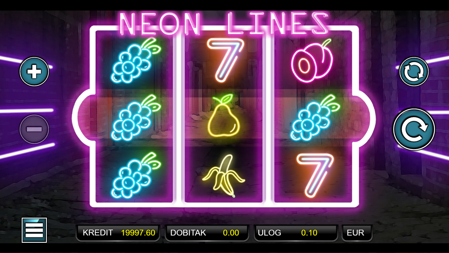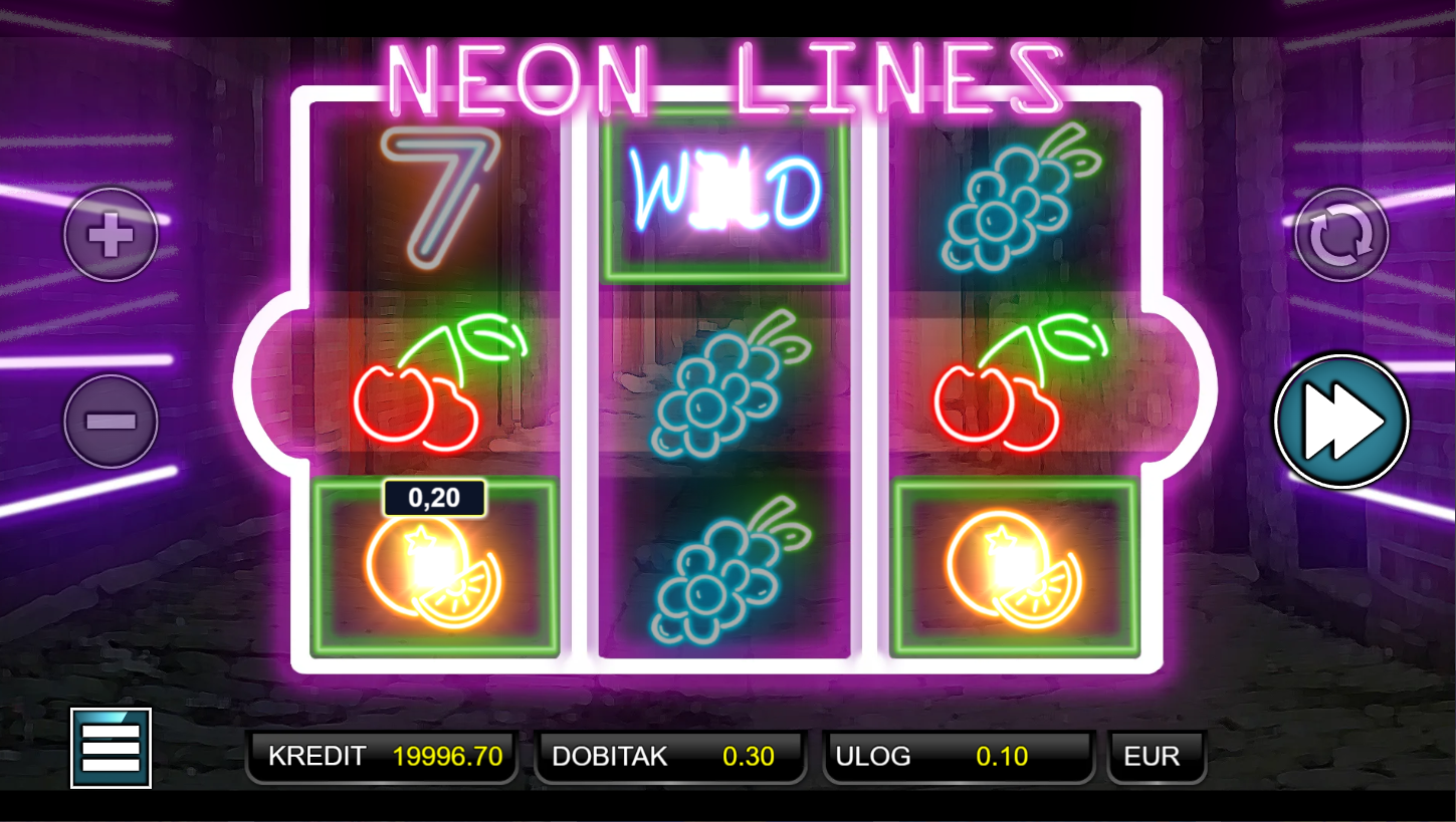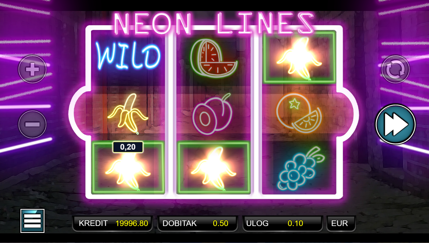 Neon Lines, od Adell, donosi retro voćni klasik u potpuno novom, modernom ruhu. Svjetleće neon boje i sjajni simboli stvaraju atmosferu pravog arkadnog kasina. Igra kombinira jednostavnost starog stila i uzbuđenje suvremenih značajki. Ako voliš brze i šarene slotove, Neon Lines će te osvojiti na prvi pogled.