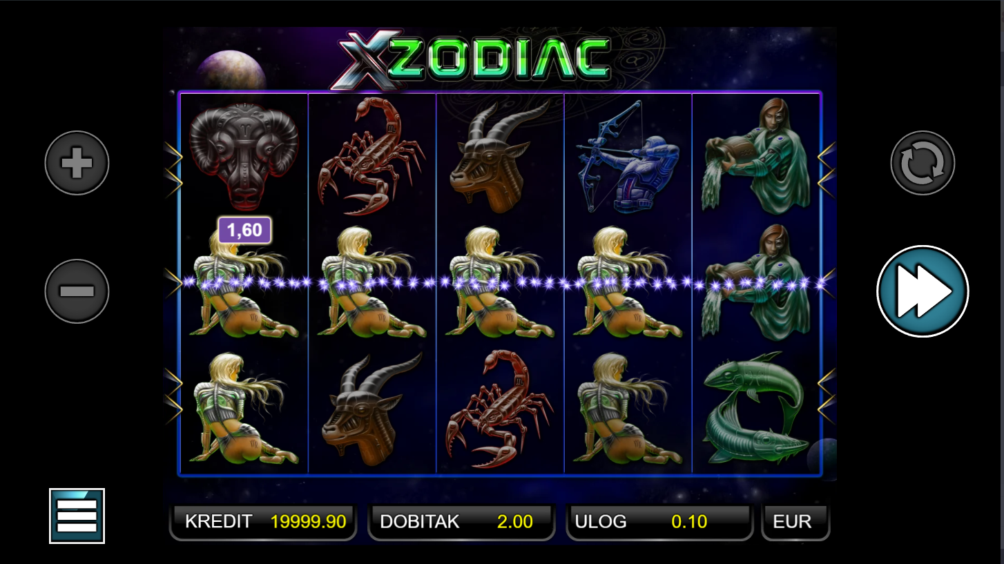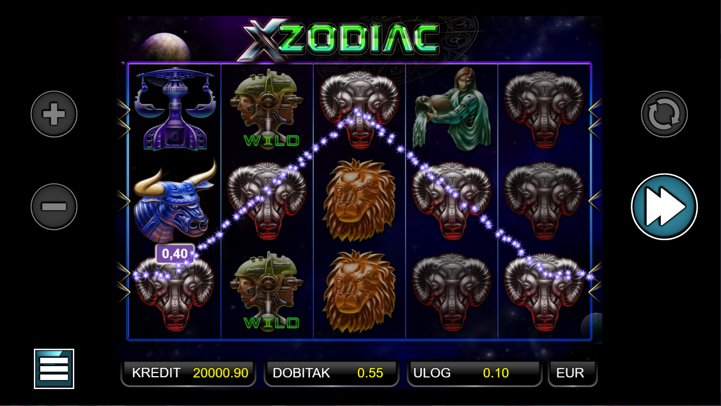 Ne, X Zodiac ne nudi klasične besplatne vrtnje, fokus je na osnovnoj igri i dobitnim kombinacijama.