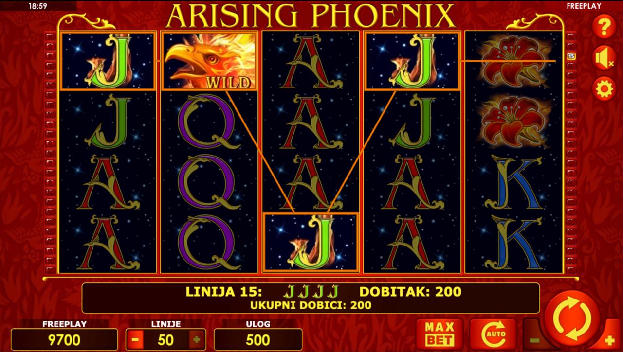 ARISING PHOENIX nema javno objavljene podatke o RTP-u i volatilnosti. Imajući na umu minimalne i maksimalne uloge te osnovnu strukturu, može se pretpostaviti da igra ima nisku ili umjerenu volatilnost — što je pogodna opcija za igrače koji preferiraju stabilnu dinamiku i manje oscilacije.