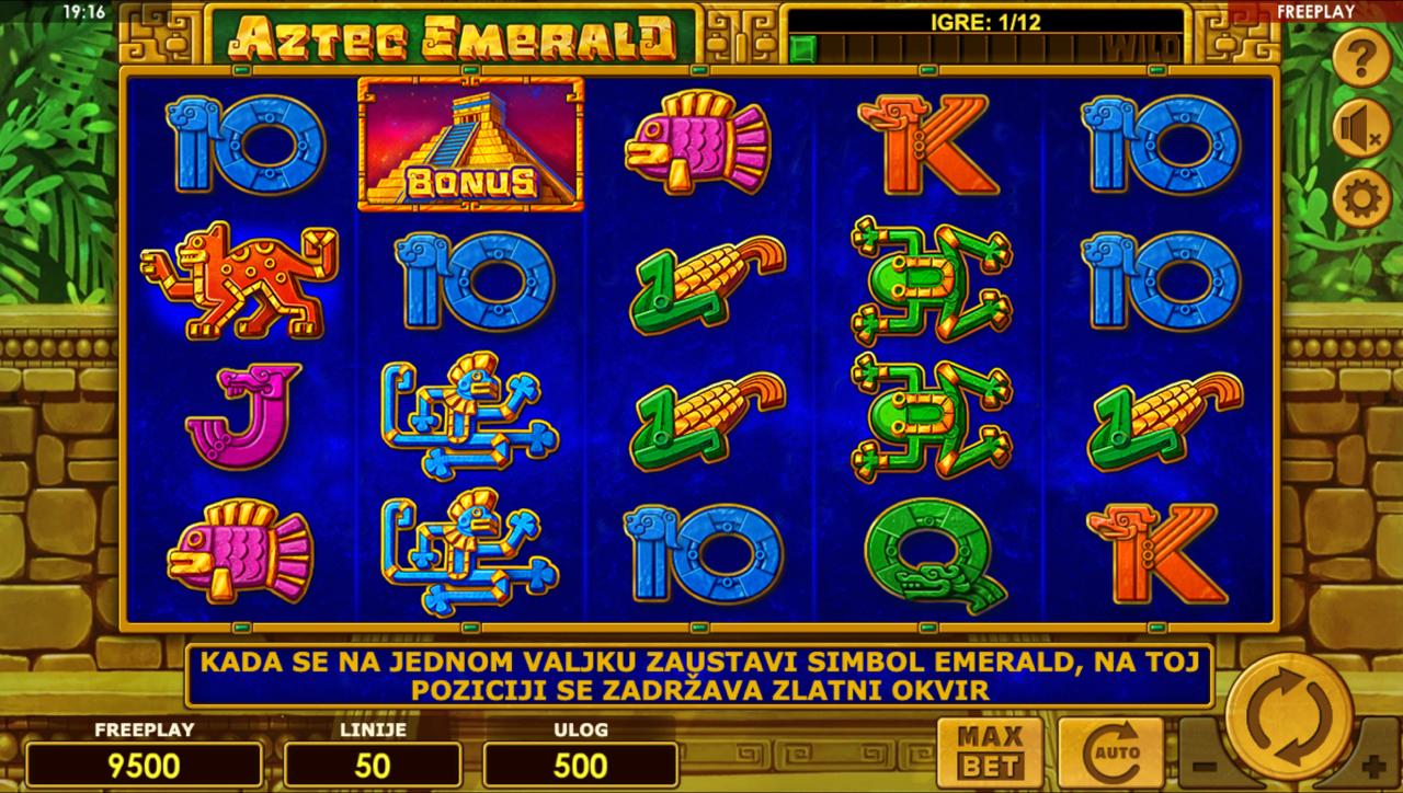 AZTEC EMERALD je slot igra providera Oryx s temom drevne civilizacije Asteka — simboli, hijeroglifi i drevni artefakti stvaraju atmosferu avanture i misterije. Minimalni ulog iznosi 0,50 €, a maksimalni 10,00 €, što igru čini pogodnom za igrače s manjim i umjerenim ulozima. Igra nema jackpot, pa se dobitci ostvaruju kroz standardne isplatne linije i klasičan slot gameplay. Ako tražiš slot s temom istraživanja i blagom — AZTEC EMERALD je dobar izbor.
