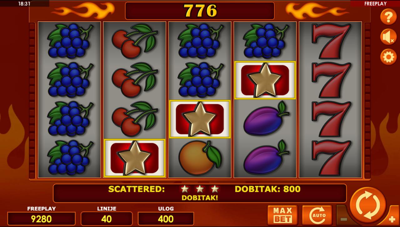 Odaberi ulog između 0,40 € i 10,00 €, pokreni spin i prati simbole na rolama. Ako se simboli poravnaju na isplatnoj liniji — ostvaruješ dobitak. Igra ne sadrži bonus funkcije, besplatne vrtnje ni jackpot — sve ovisi o razmještaju simbola i sreći pri svakom spinu.