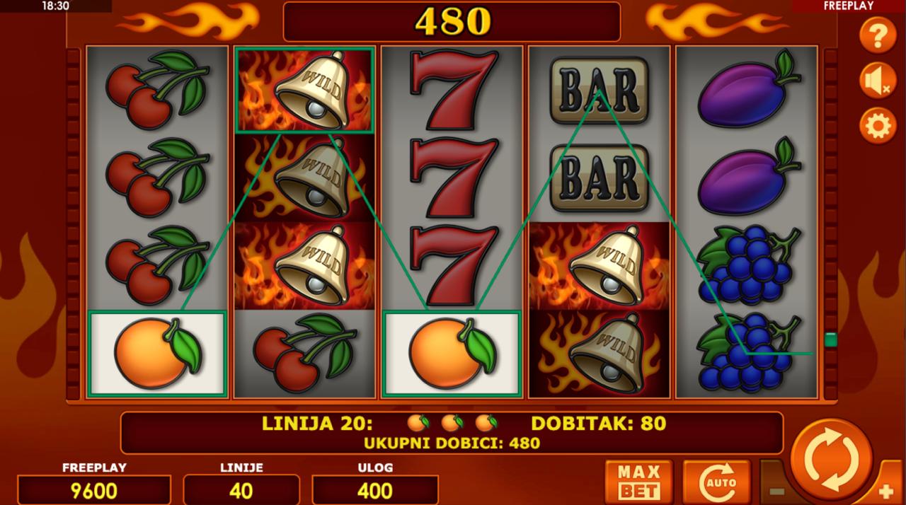 BELLS ON FIRE je slot igra providera Oryx s klasičnim slot motivima — zvona, sedmice, voćkice i jednostavnim isplatnim linijama. Minimalni ulog iznosi 0,40 €, dok maksimalni ulog iznosi 10,00 €, što igru čini dostupnom i za igrače s manjim budžetom. Igra nema jackpot — sve se zasniva na standardnoj slot mehanici i osnovnim isplatnim linijama. Ako želiš klasičan slot bez dodatnih funkcija i s jasnim pravilima — BELLS ON FIRE je dobar izbor.