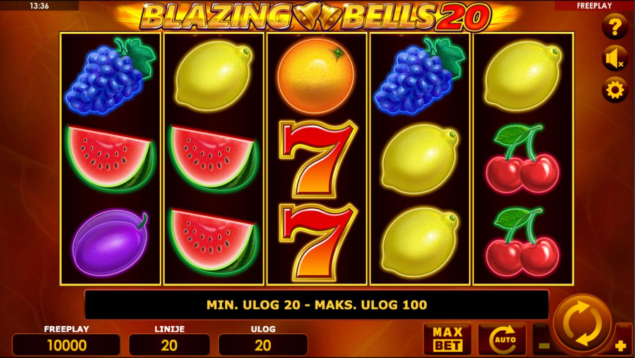 BLAZING BELLS 20 se igra na standardnoj slot mreži. Cilj je složiti iste simbole na isplatnim linijama kako bi se ostvario dobitak. Minimalni ulog je 0,20 €, a maksimalni 10,00 €, što omogućuje fleksibilno igranje — od opreznog do zabavnog. Igra nema besplatnih vrtnji, bonus rundi ni jackpot, fokusirajući se na čistu i brzu slot akciju.