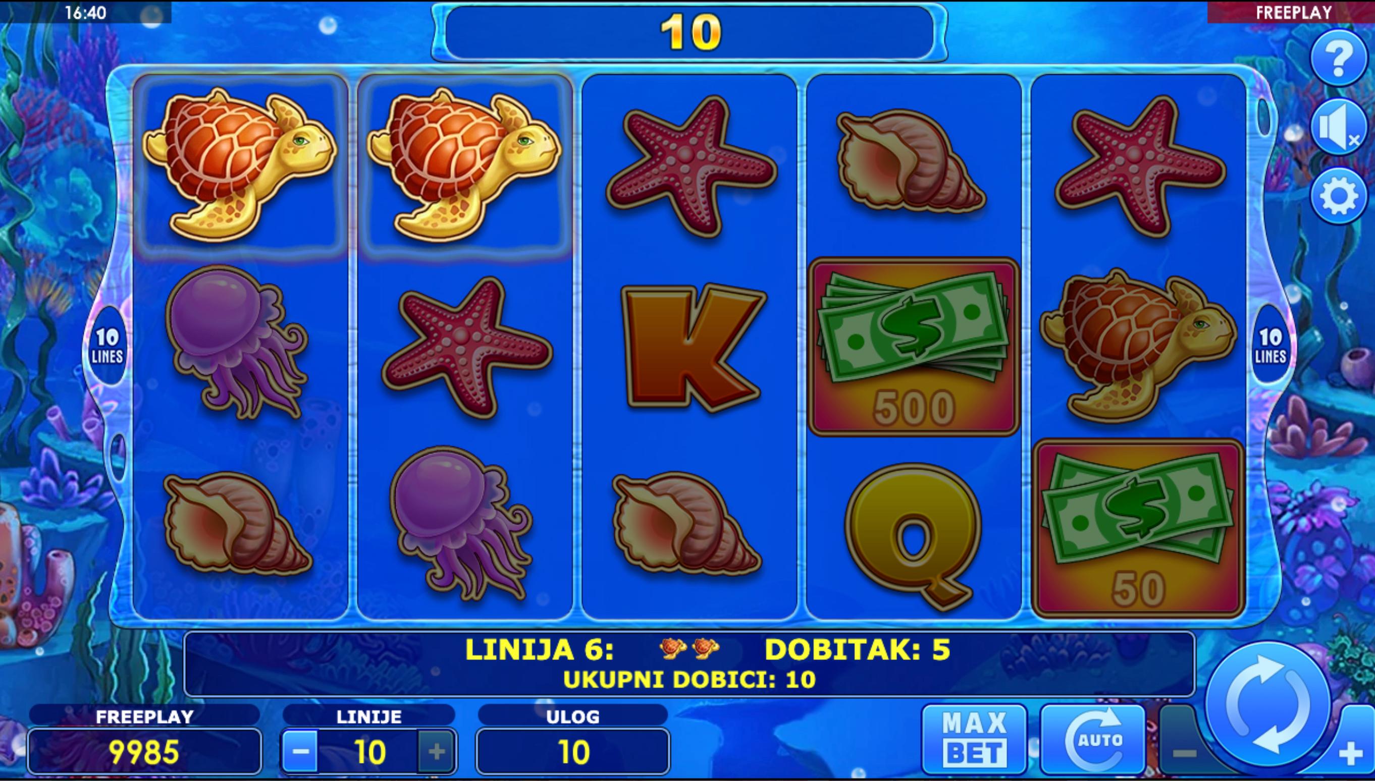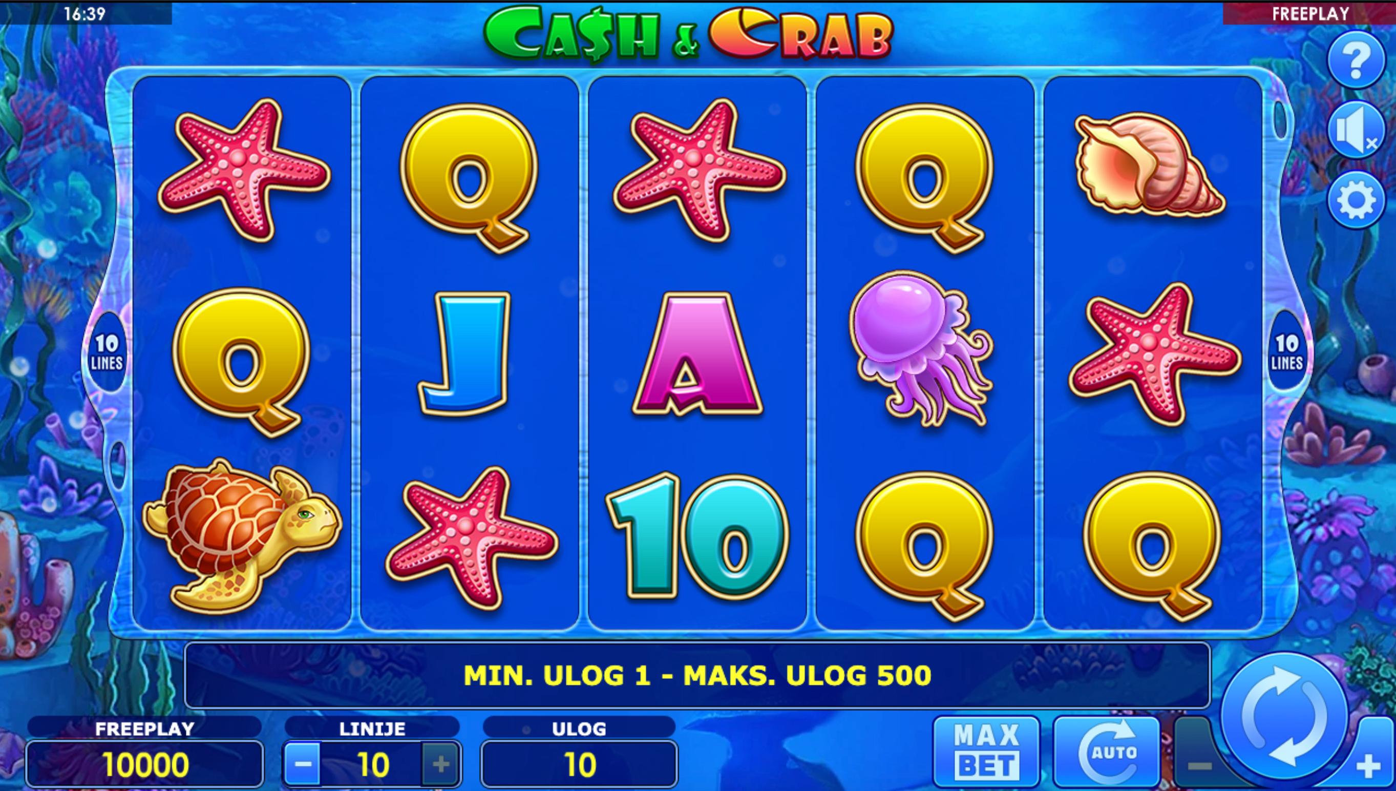 Odaberite ulog između 0,10 € i 10,00 €, pritisnite Spin i promatrajte mrežu od 5 koluta. Cilj je složiti dobitne kombinacije s lijeva na desno. Krab-simbol (Scatter) pokreće rundu besplatnih vrtnji u kojoj se Wild simboli skupljaju – svaki četvrti Wild donosi dodatnih vrtnji i povećani multiplikator do x5. Kroz bonus rundu mogu se zbrajati vrijednosti simboličnih dobitaka (“Cashwin” simboli) za veći ukupan iznos.