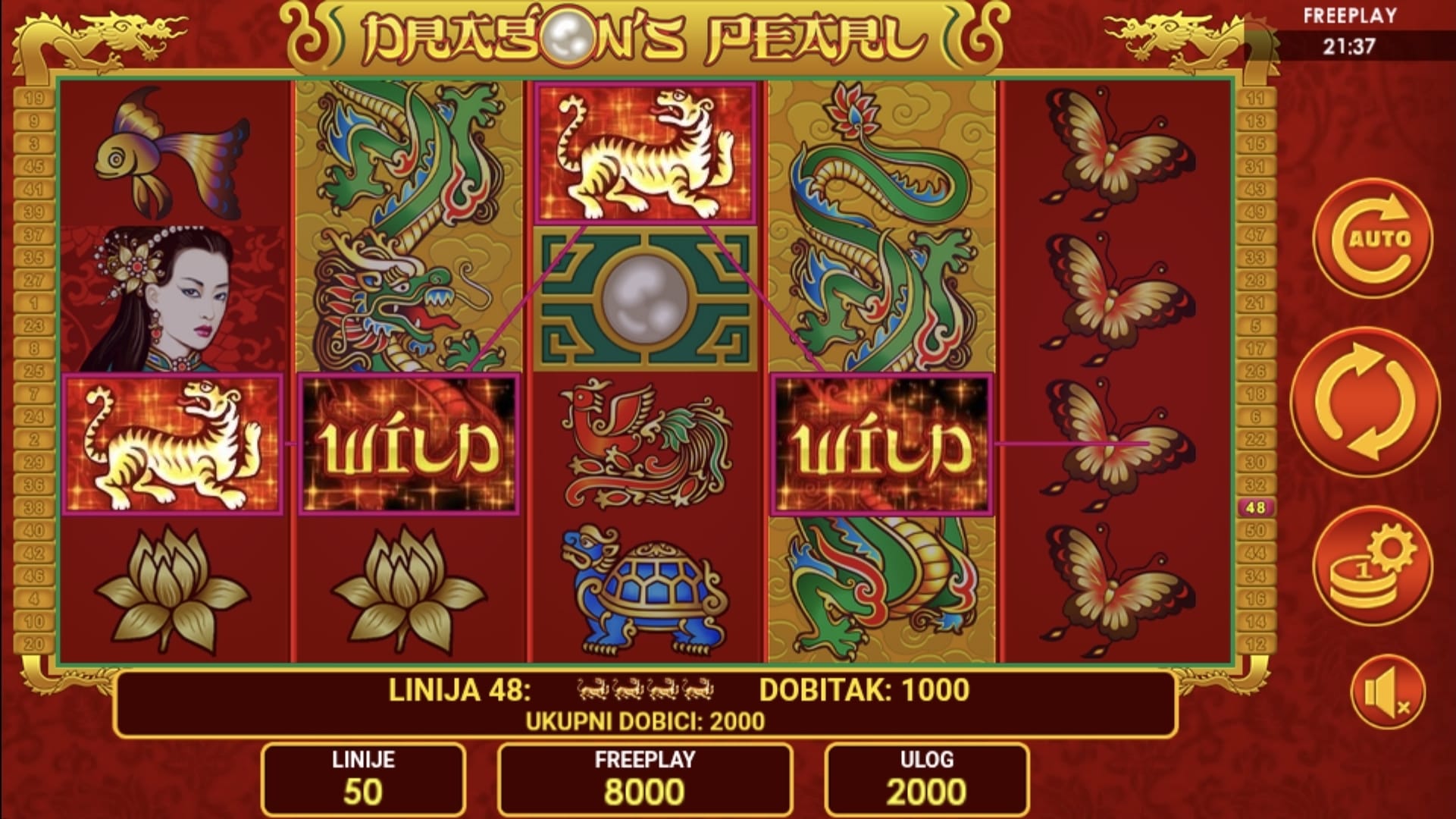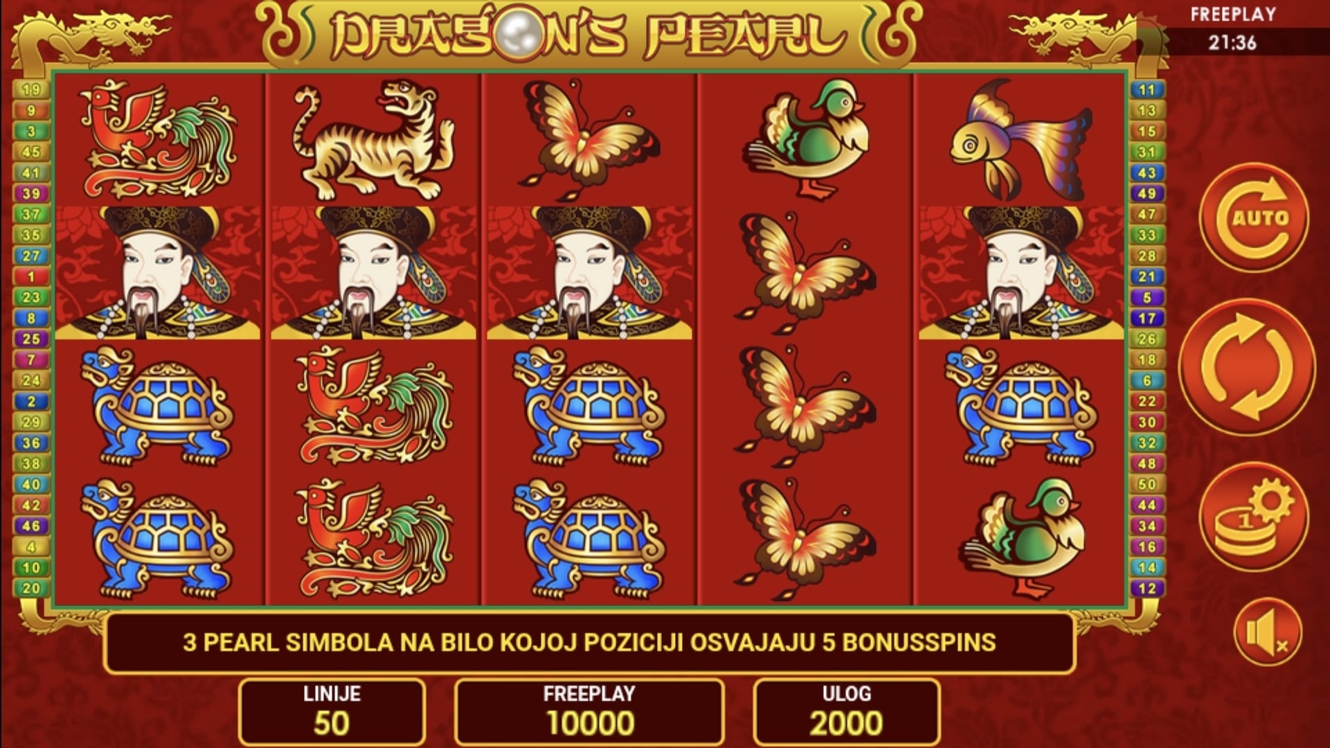 Dragon Wild zamjenjuje sve simbole osim Scatter simbola. Simbol Dragon Wild pojavljuje se samo na bubnjevima 2, 3, 4 i 5. Scatter simboli su simboli Bisera i isplaćuju na bilo kojoj poziciji, ali se pojavljuju samo na bubnjevima 2, 3 i 4. Tri simbola Bisera na bilo kojem položaju u glavnoj igri aktiviraju 5 BONUSSPINS. Tijekom BONUSSPINS okretaja, svaki simbol Bisera produljuje bonus za dodatni okretaj, pri čemu se Dragon Wild pojavljuje samo na bubnjevima 2, 3 i 4. Dobitci od Scattera zbrajaju se s linijskim dobitcima.