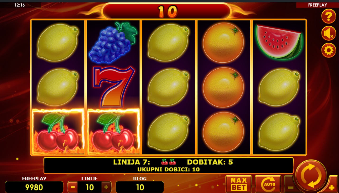 Minimalni ulog iznosi 0,10€, dok je maksimalni 10€.