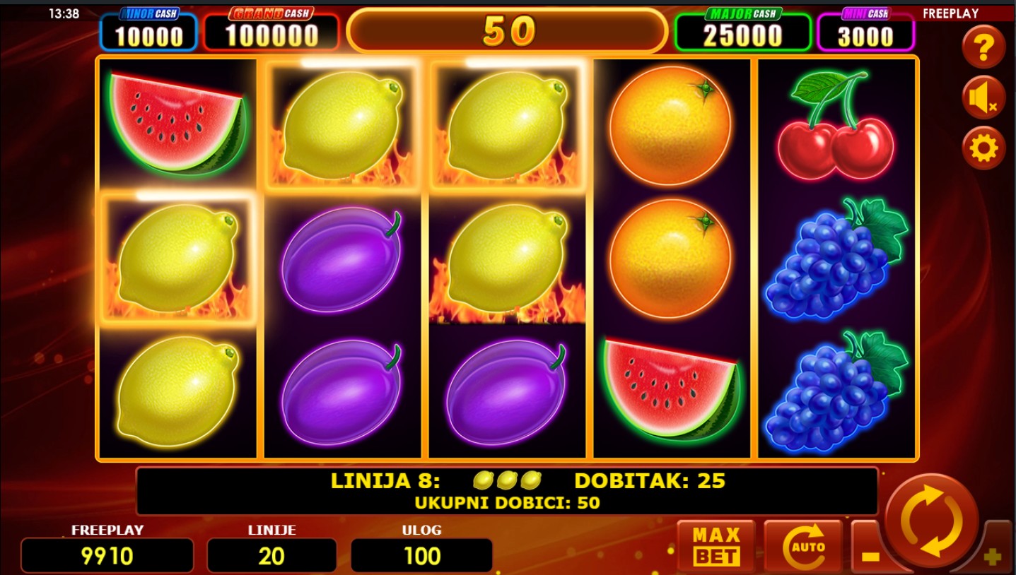 1. Ima li Hot Fruits 20 Cash Spins besplatne vrtnje?