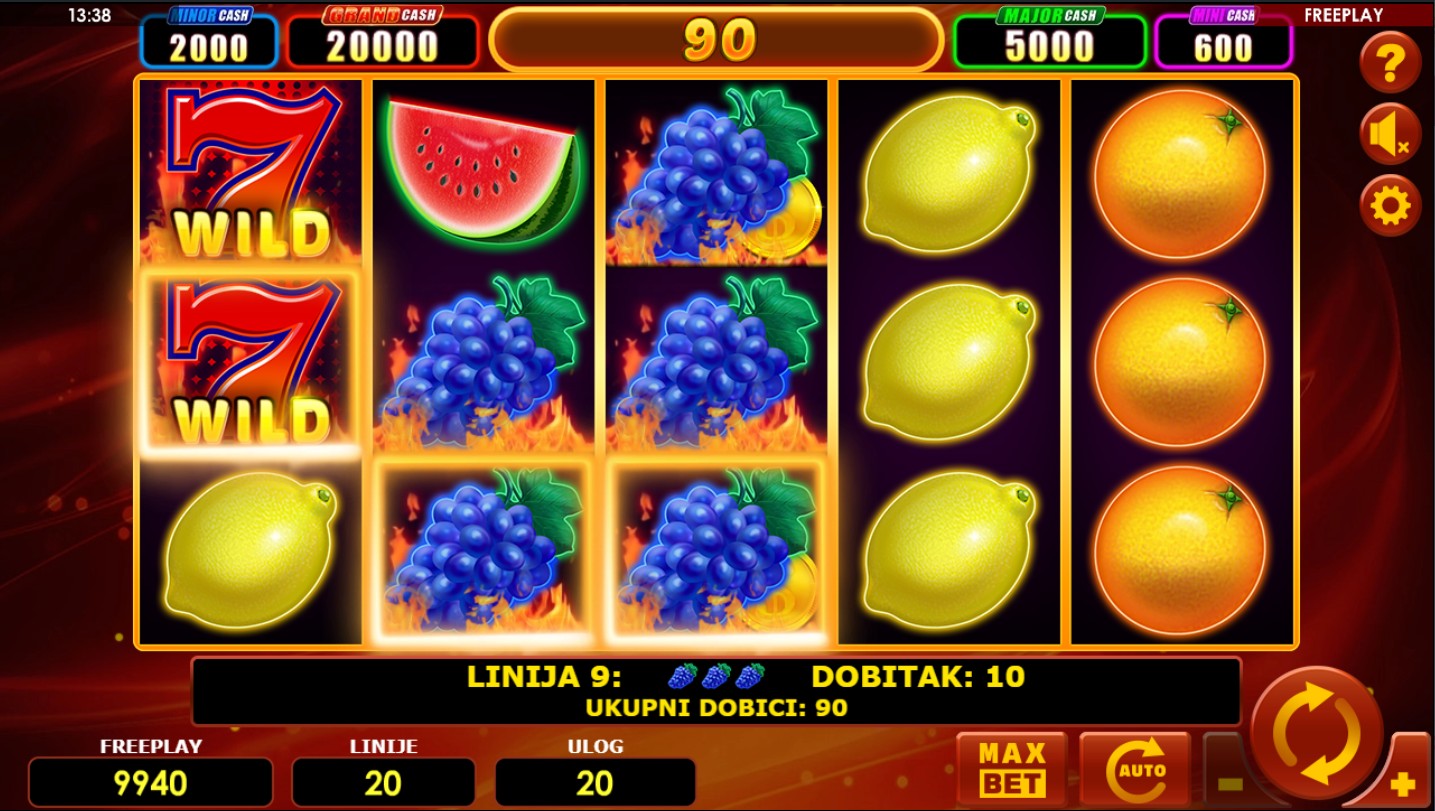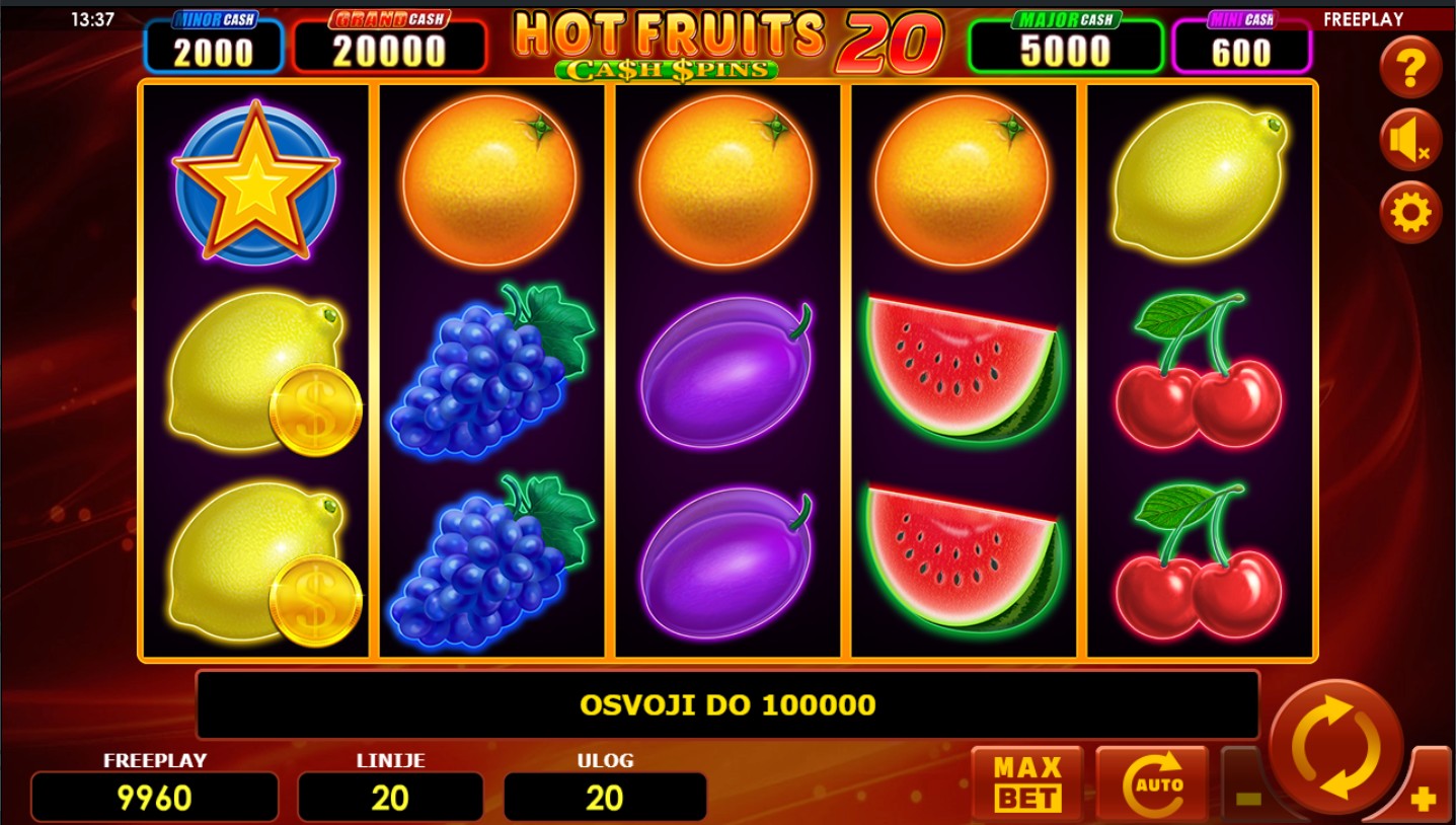 4. Koji su minimalni i maksimalni ulozi u igri Hot Fruits 20 Cash Spins?