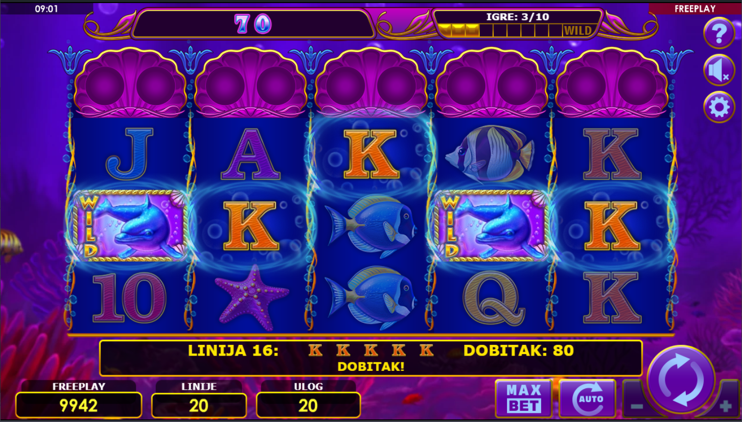 Vrti kolute i traži bisere, školjke i podvodne dragulje! Simbol princeze donosi najveće nagrade, dok Scatteri otključavaju besplatne vrtnje s dodatnim iznenađenjima. Wild simbol pomaže u stvaranju dobitnih kombinacija, a igra nudi jednostavno, ali očaravajuće iskustvo. Svaki spin je novi val sreće, dopusti da te oceanska magija povede!