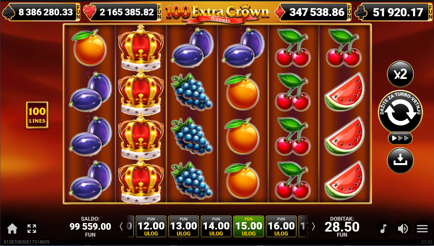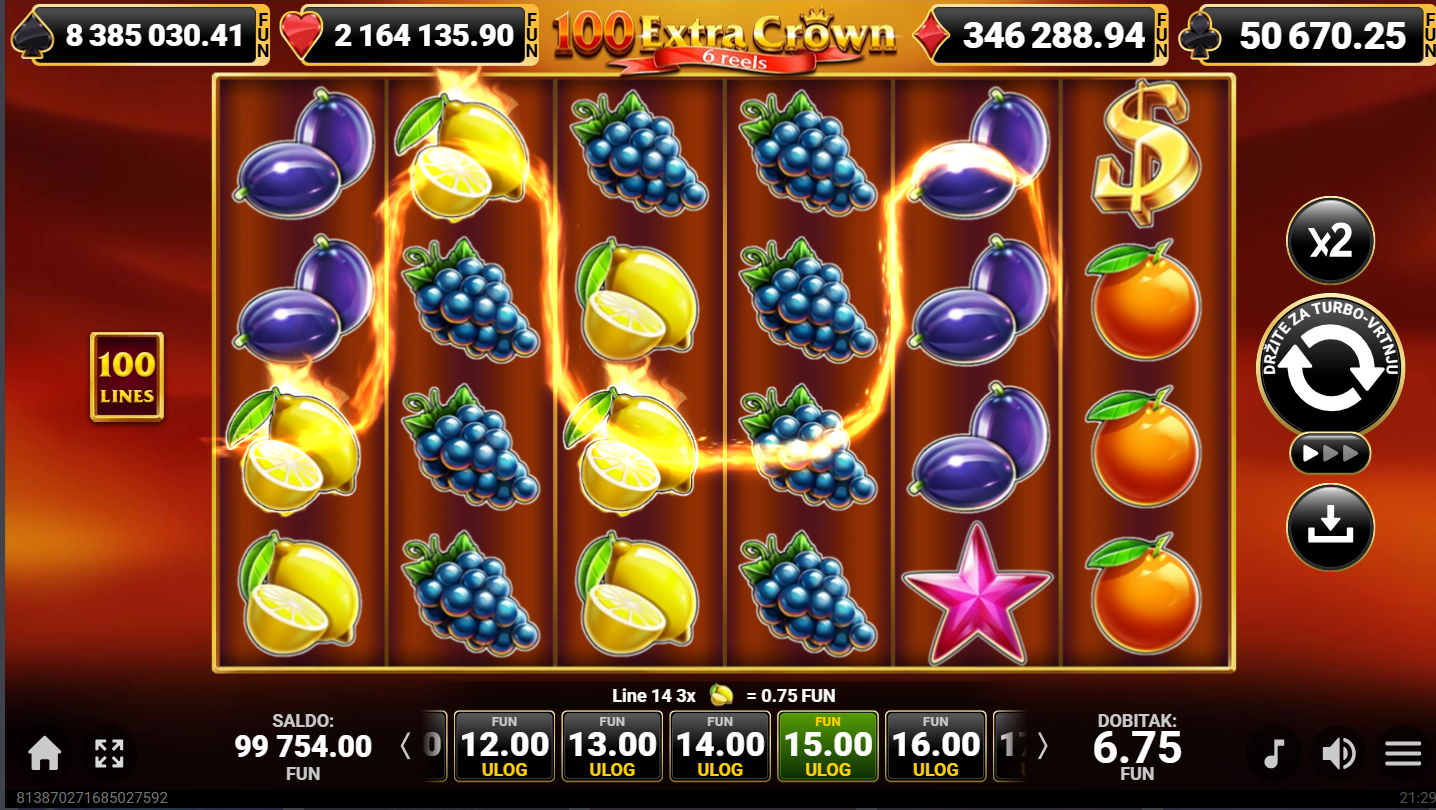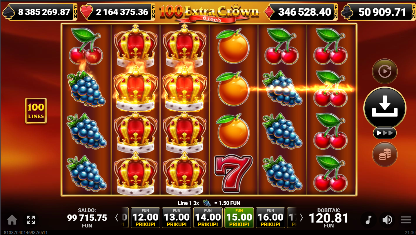 3. Mogu li igrati 100 Extra Crown 6 Reels besplatno?
