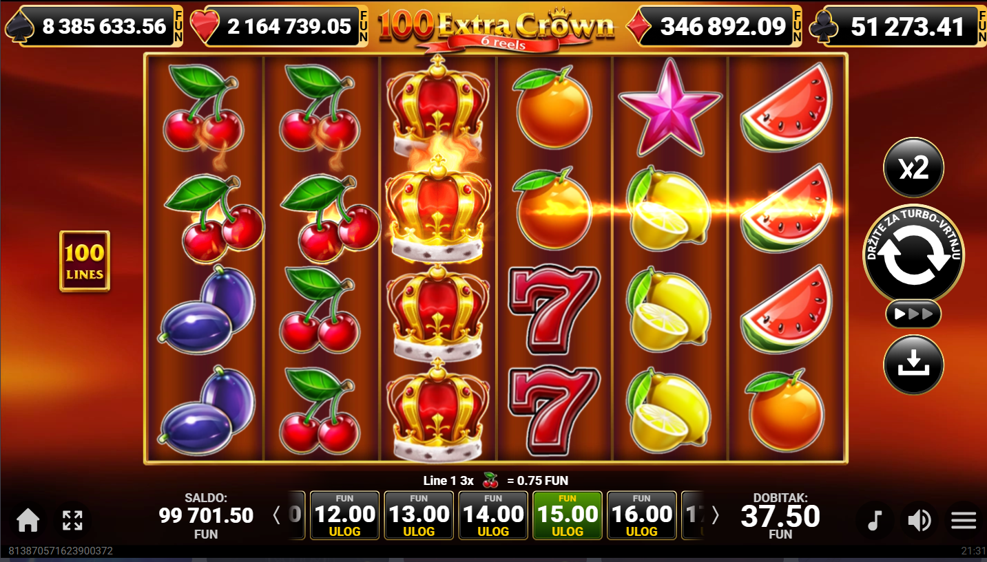 Kako se igra 100 Extra Crown 6 Reels