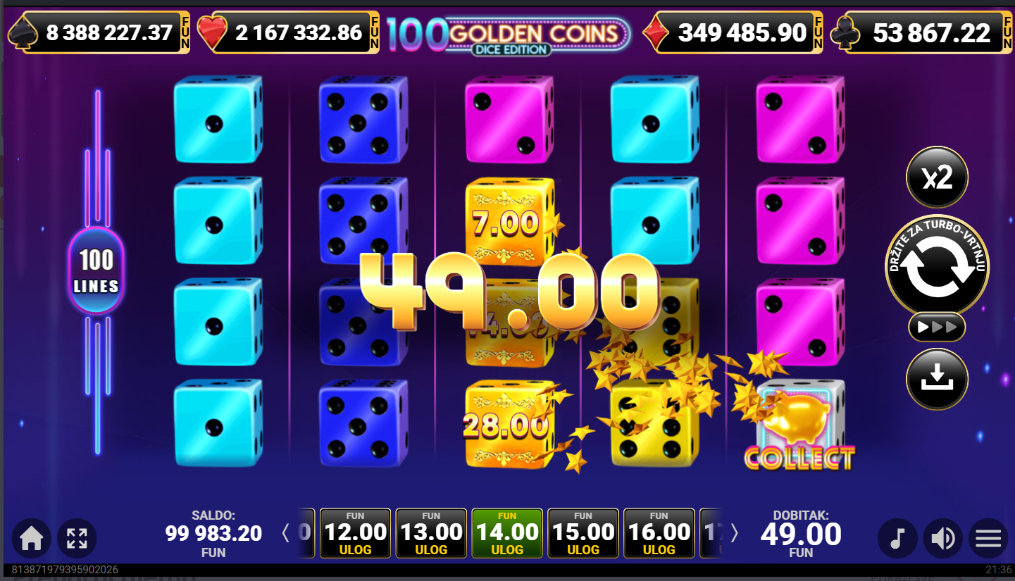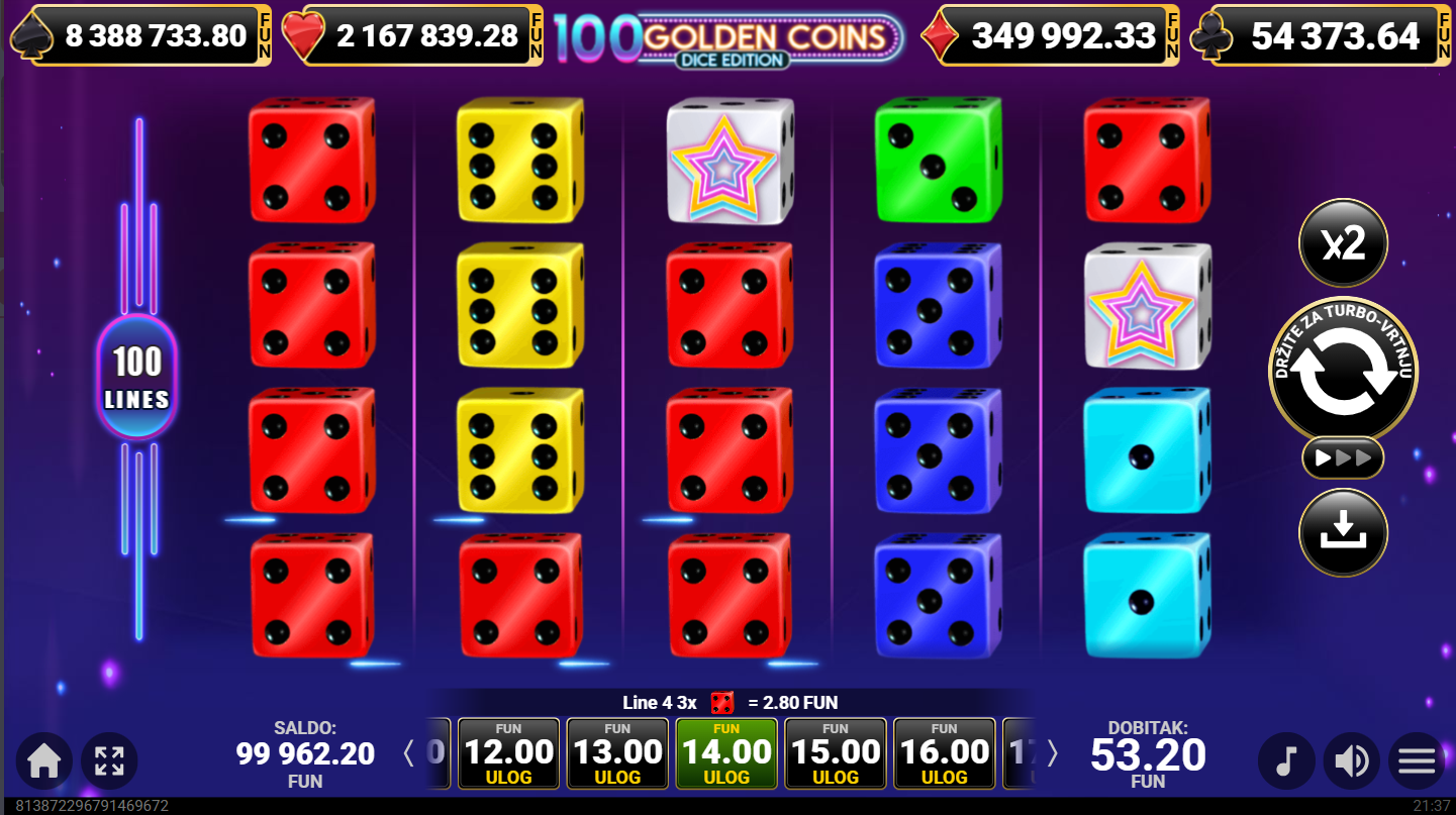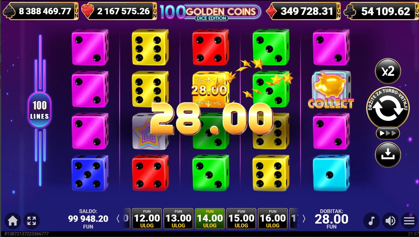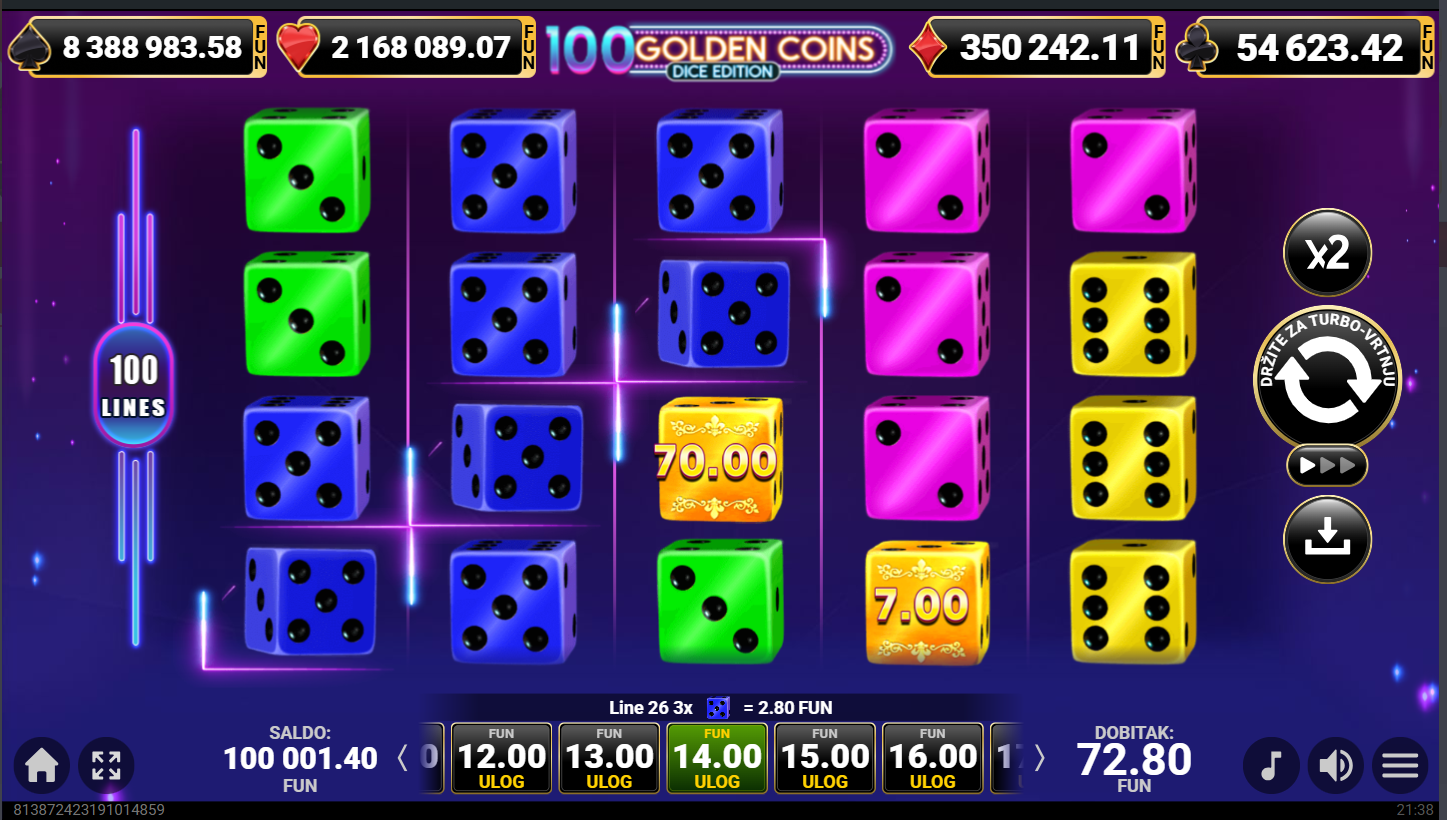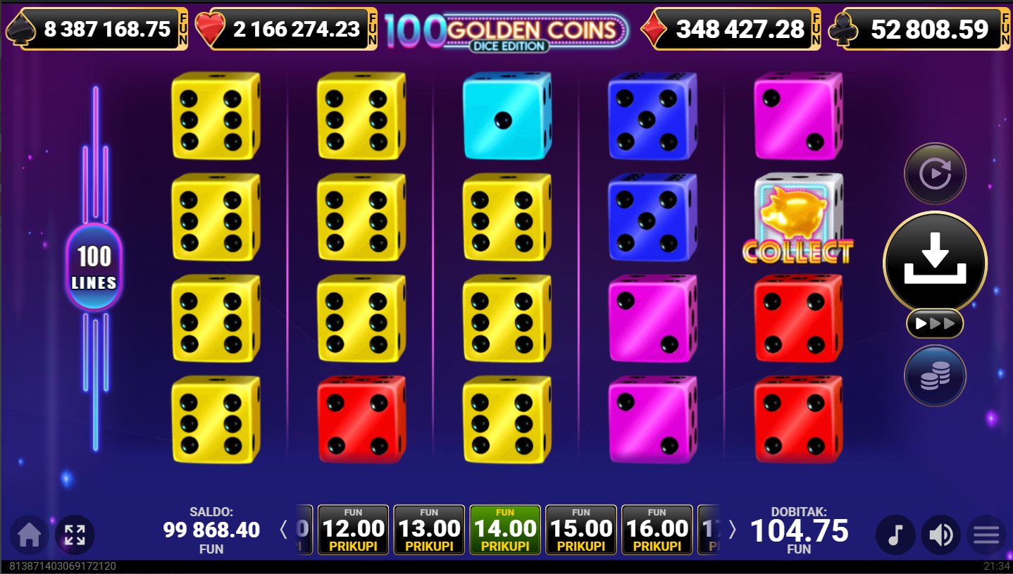 100 Golden Coins Dice Edition ima jackpot!