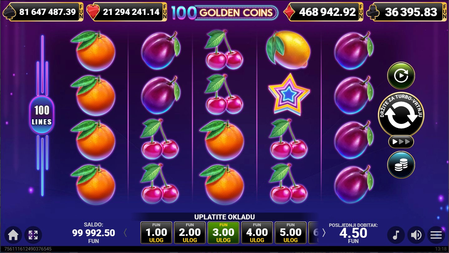 3. Je li dostupna demo verzija igre 100 Golden Coins?