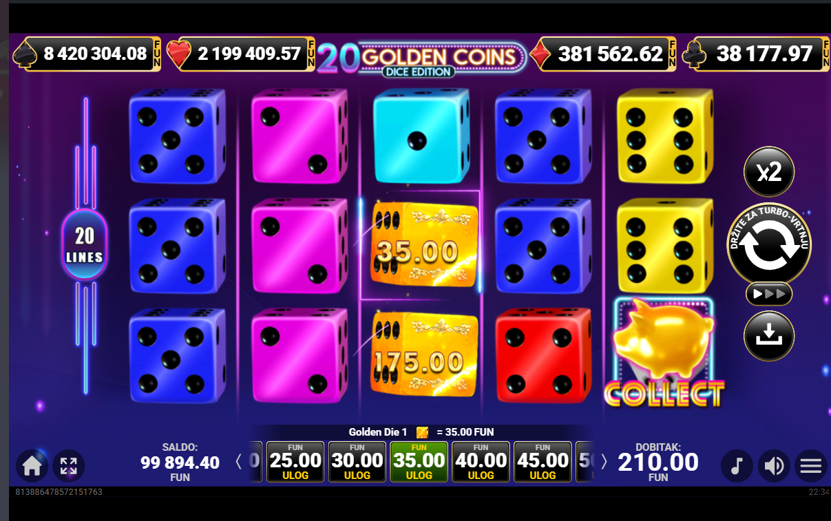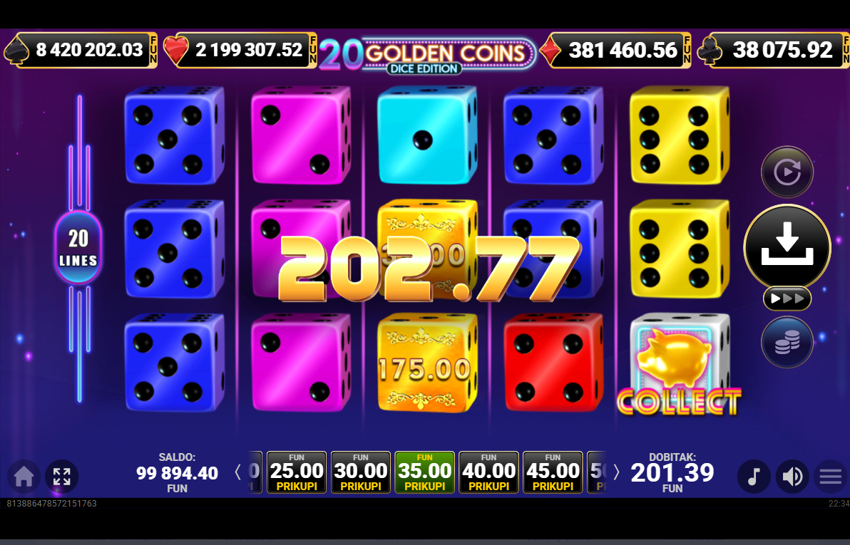 20 Golden Coins Dice Edition ima jackpot!