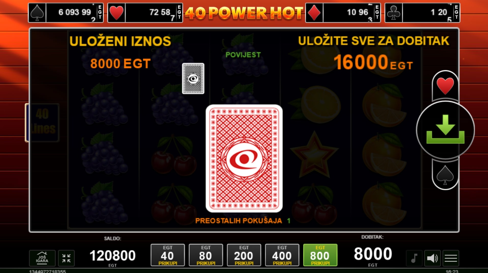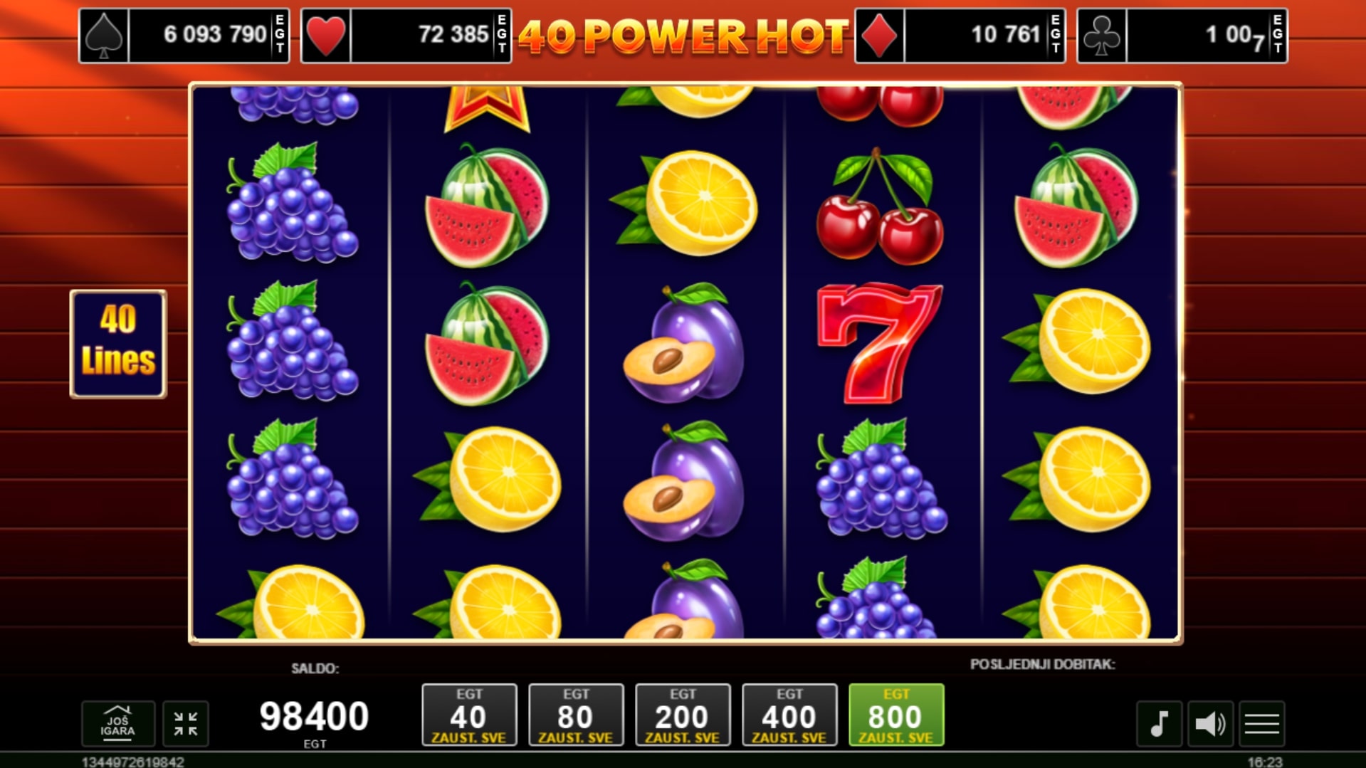 40 Power Hot slot je igra retro tematike koja vodi igrača u klasični svijet igara na sreću. Količinski dominiraju simboli voća kao što su grožđe, lubenice i šljive, a najveće dobitke isplaćuju simboli sedmica i zvijezde. Također, sedmica služi kao zamjena za druge simbole, dok simbol zvijezde isplaćuje dobitke gdje god se našla. U slučaju dobitka, moguće ga je udvostručiti pogađanjem boje karte okrenute licem prema dolje. Zaigraj 40 Power Hot te osvoji super nagrade!