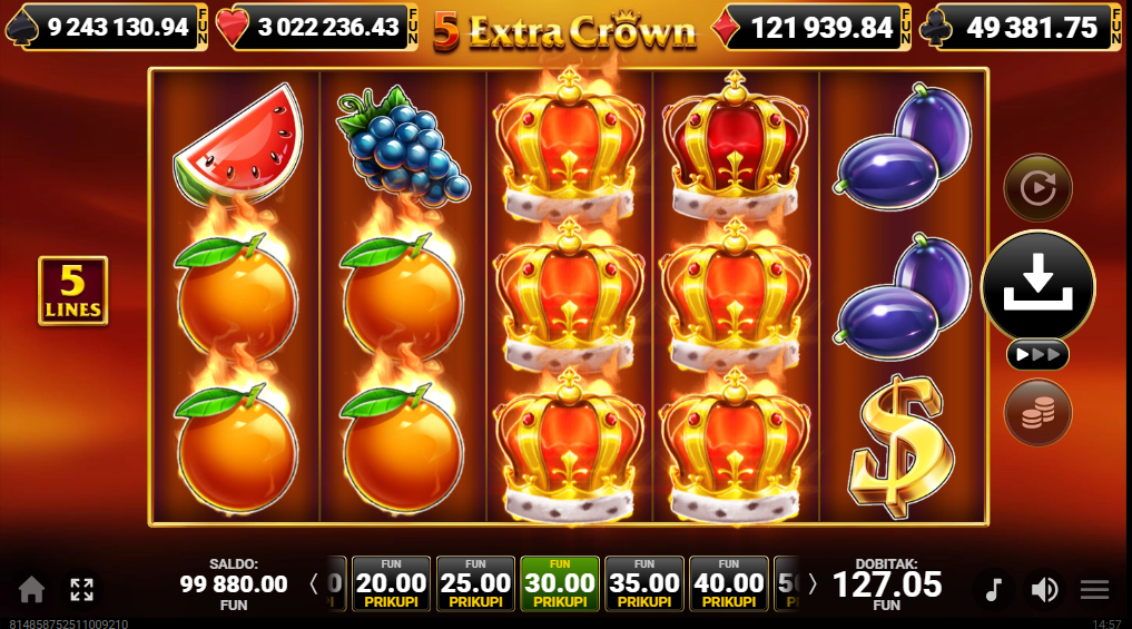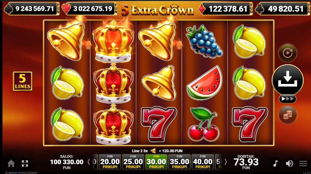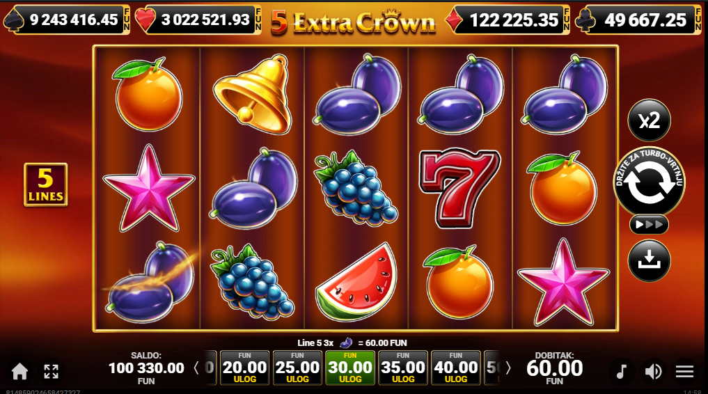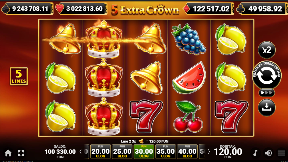 5 Extra Crown ima RTP 96,19% i srednju volatilnost