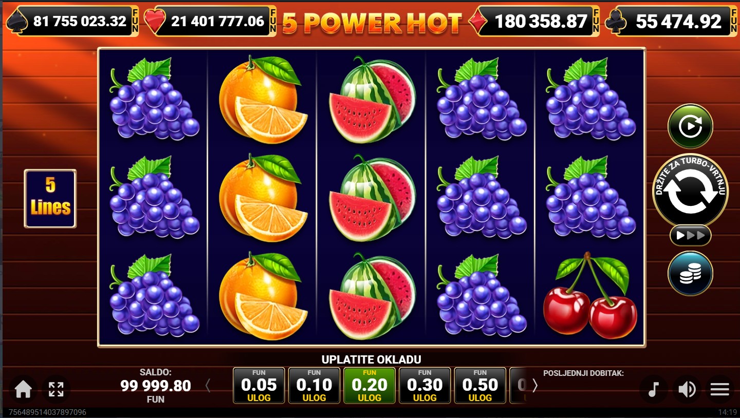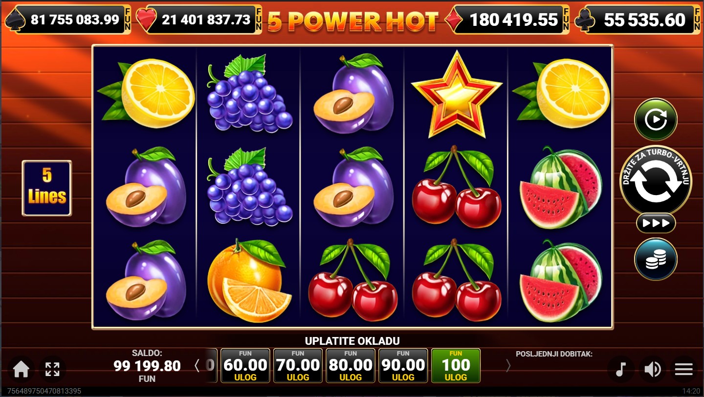5 Power Hot ima RTP od 96,44%, što znači da pruža vrlo solidne šanse za dobitak tijekom igre. Volatilnost je srednja što povećava uzbuđenje jer igra može donijeti značajne dobitke, osobito tijekom bonus značajki. Idealna je za igrače koji vole dinamičnu s potencijalom za veće nagrade.