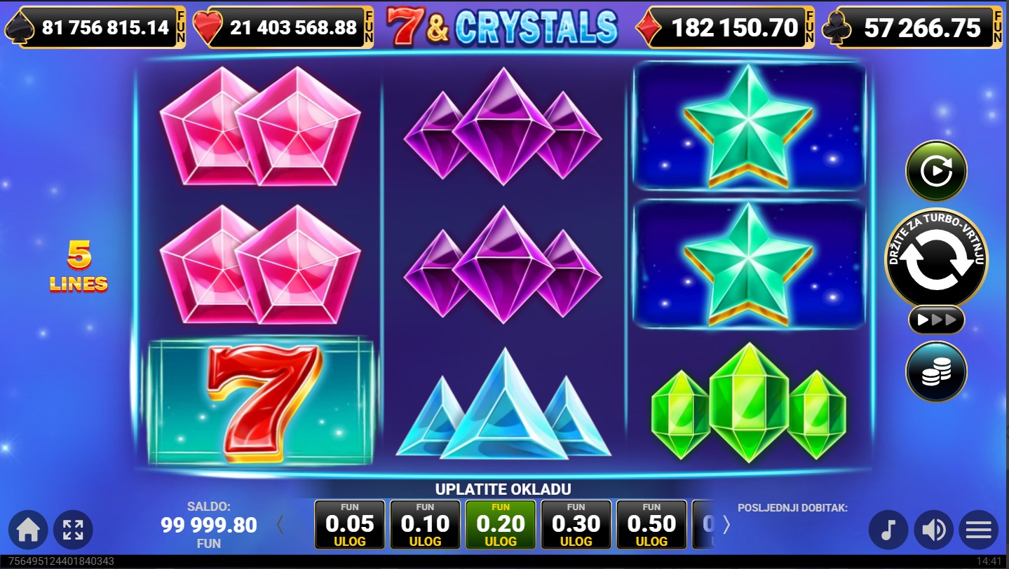 4. Koji su minimalni i maksimalni ulozi u igri 7 & Crystals?
