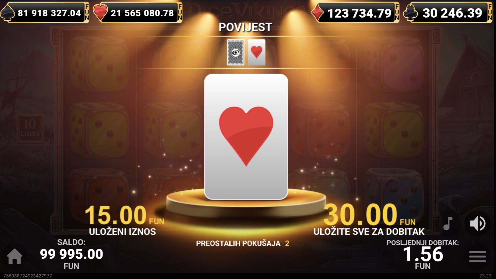 Nakon svake dobitne vrtnje, imate priliku udvostručiti dobitak u značajci Klađenja pogađajući boju sljedeće karte.