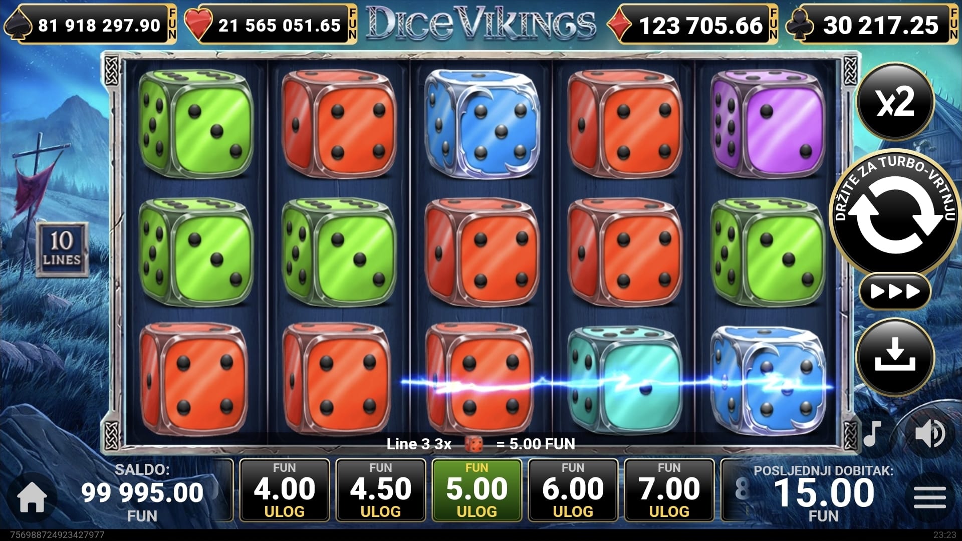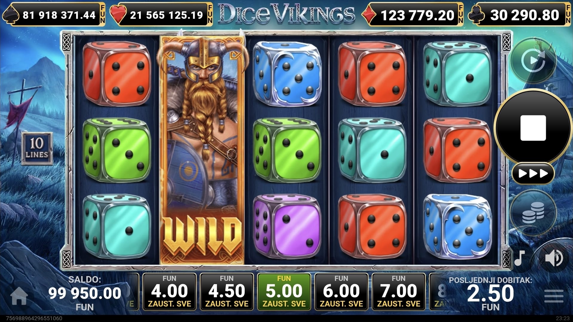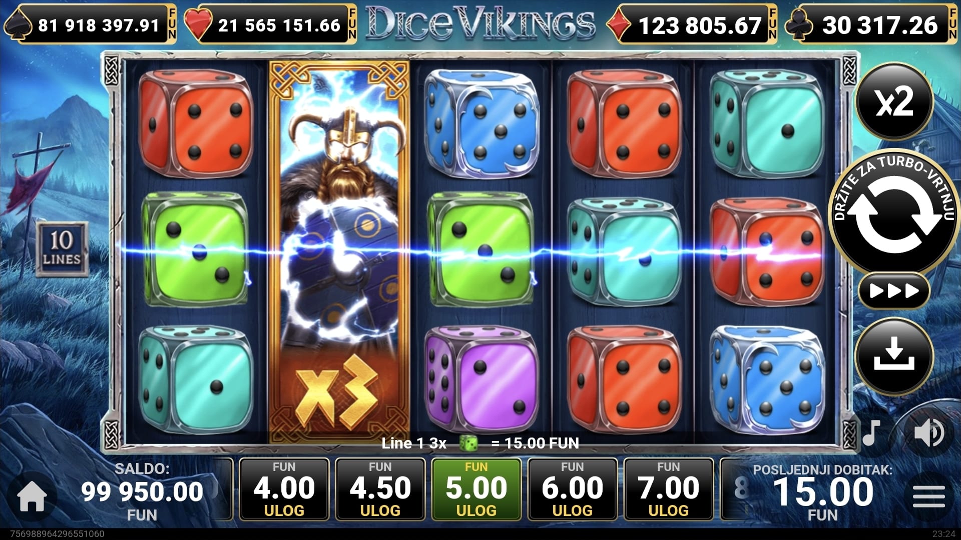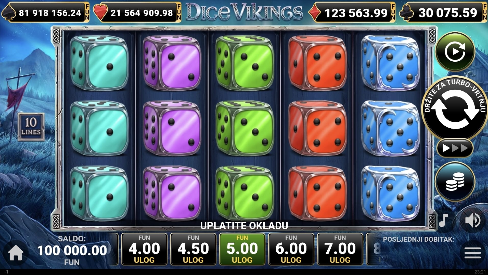 Igra Dice Vikings ima RTP od 95.14%. Zbog ljepljivih Wild simbola, Besplatnih vrtnji i posebne bonus igre s kockicama, volatilnost ove igre je visoka.