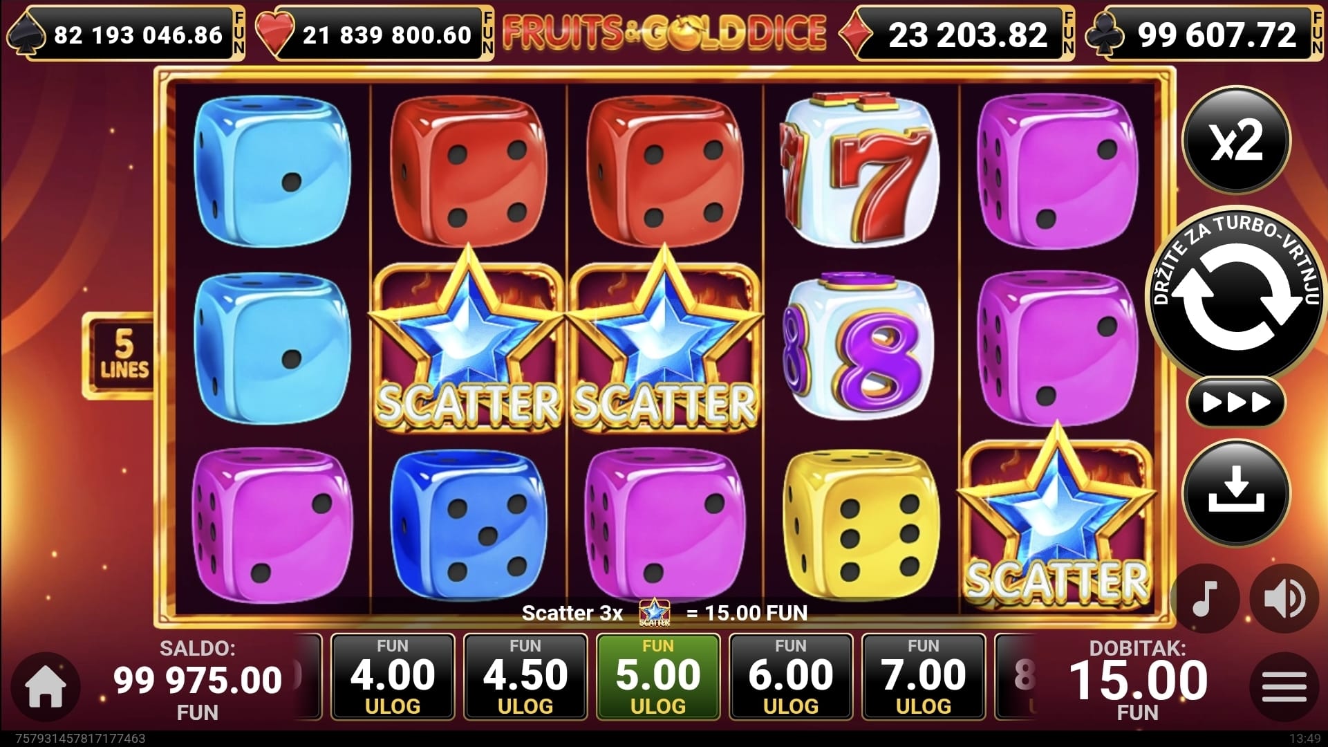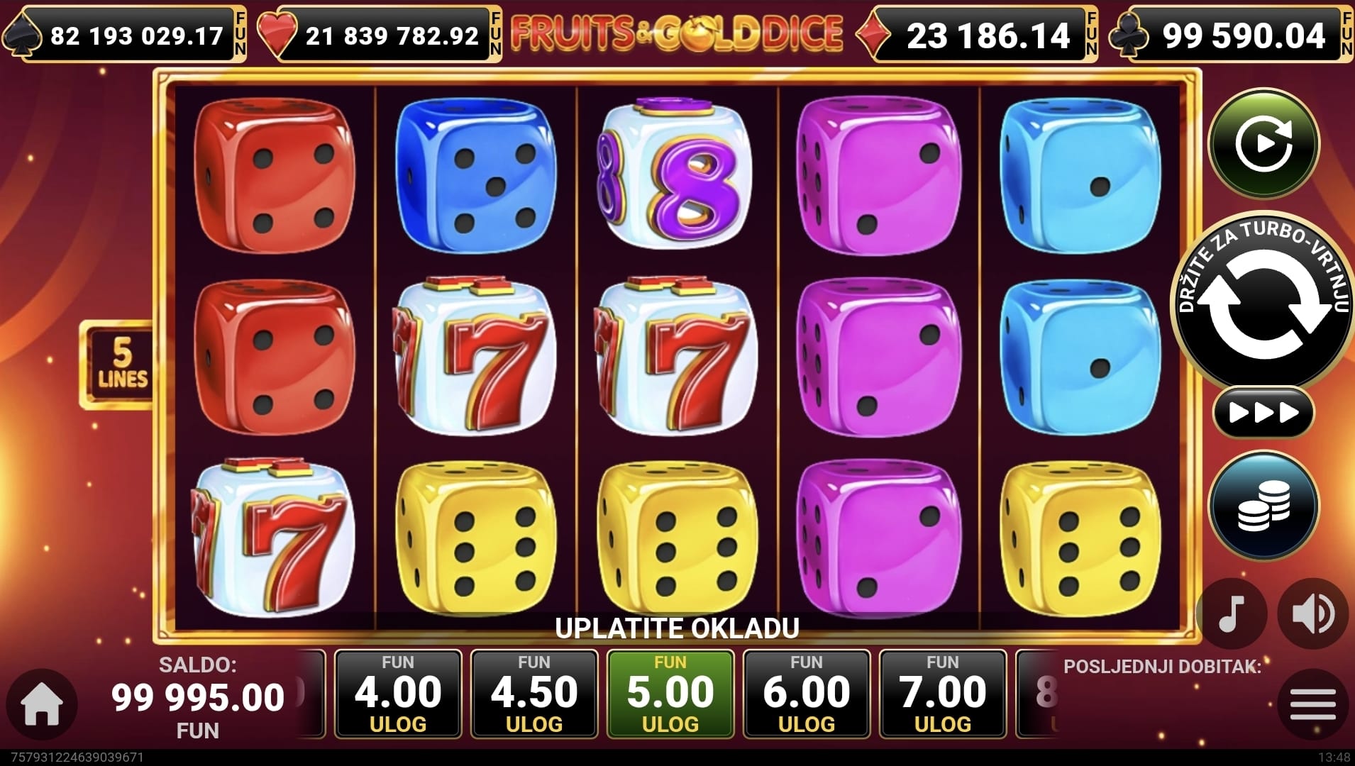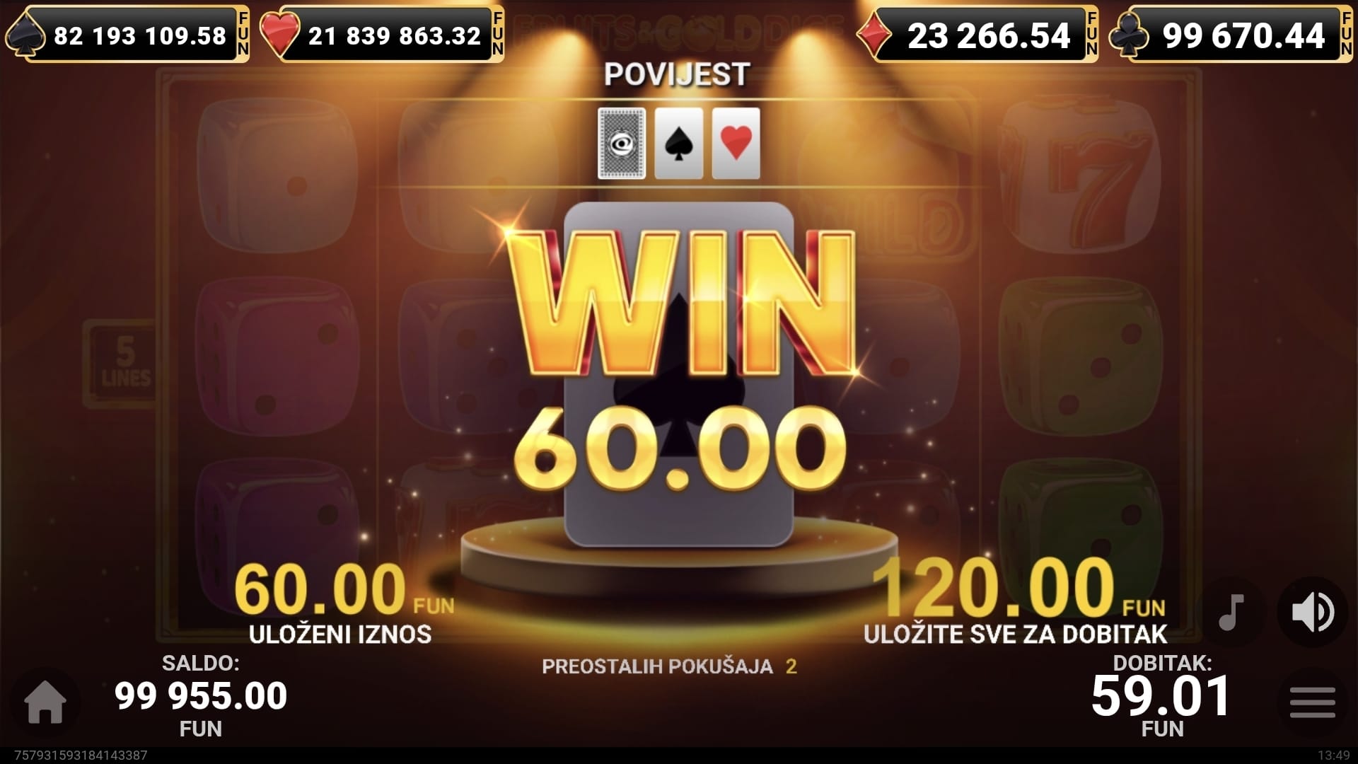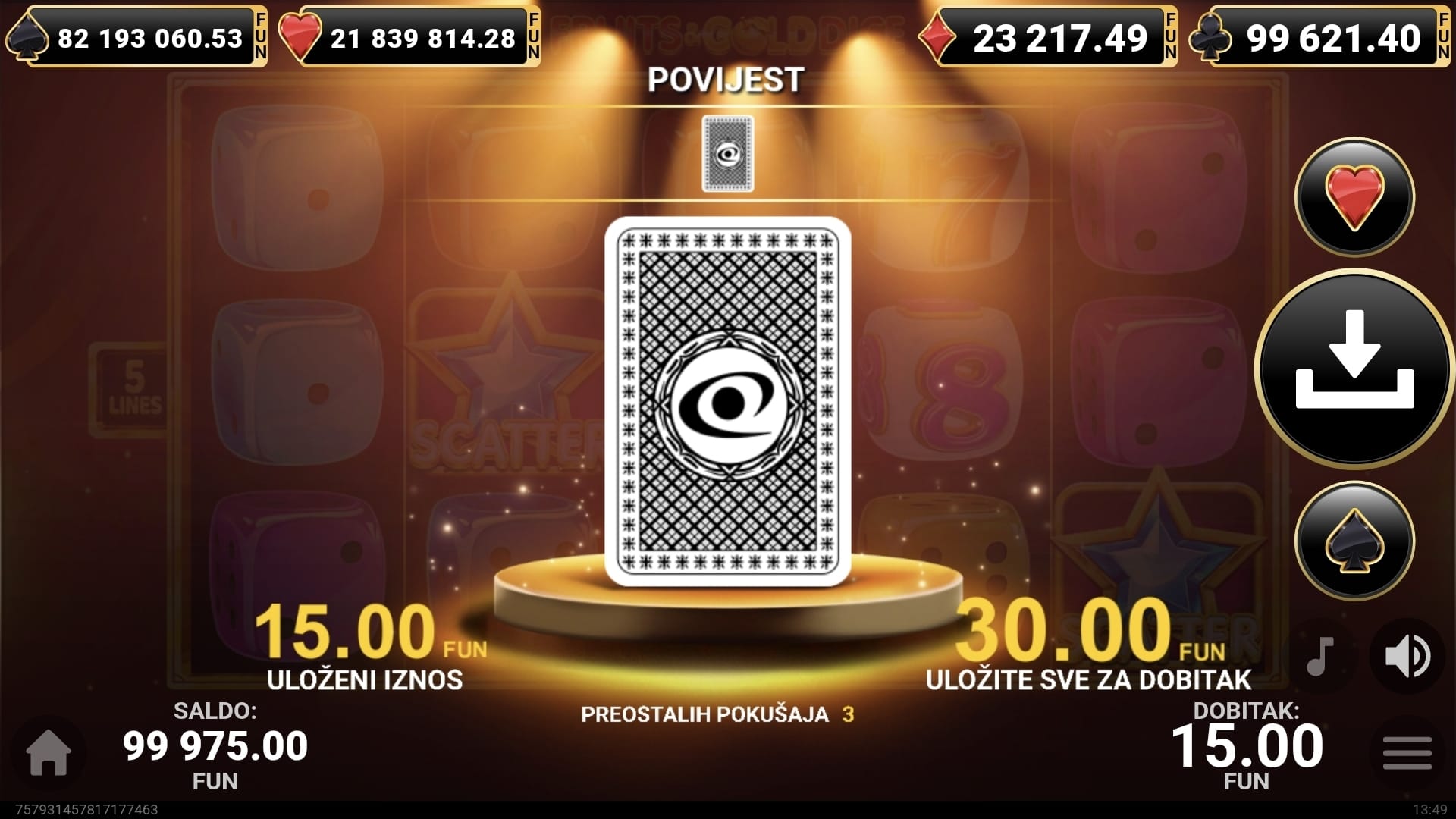 Nakon svake dobitne vrtnje, imate priliku udvostručiti svoj dobitak u značajci Klađenja pogađajući boju sljedeće karte.