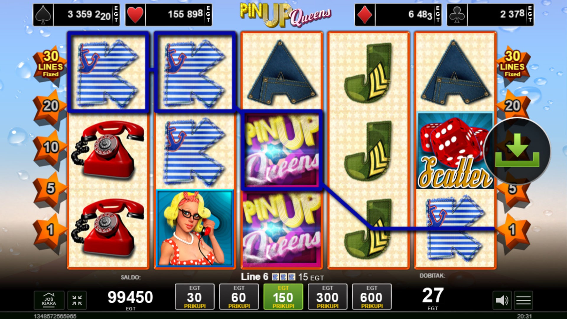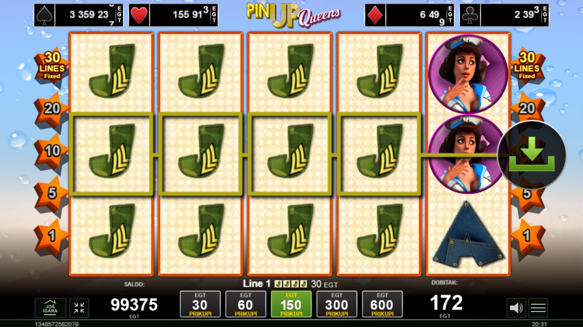 Pin Up Queens je slot igra koja te vodi u svijet retro glamura i uzbuđenja. Uživaj u raznolikim bonusima, uključujući besplatne vrtnje koje mogu značajno povećati tvoje šanse za dobitak. Igra nudi i uzbudljivu Jackpot Cards značajku s četiri razine, gdje možeš osvojiti fantastične nagrade. Sa svojim retro stilom i dinamičnim gameplayem, Pin Up Queens je savršen izbor za one koji traže zabavu i priliku za velike dobitke.