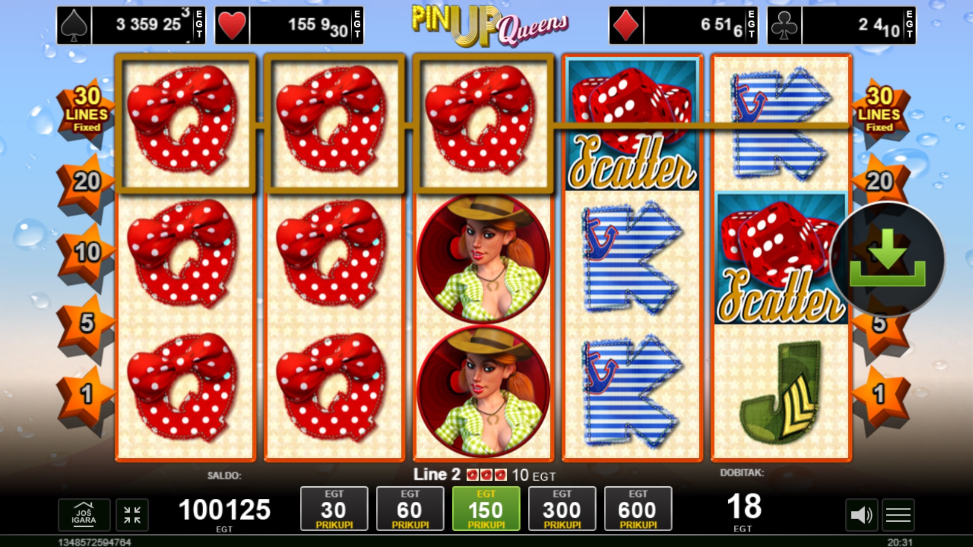 Pin Up Queens ima RTP od 96.10%, što znači da nudi solidne šanse za povrat igraču tijekom dužeg igranja. Volatilnost igre je srednja, što znači da možeš očekivati uravnotežen omjer između manjih i većih dobitaka. Ova igra je idealna za one koji uživaju u stabilnom igranju s povremenim većim nagradama, uz dodatnu napetost koja dolazi s jackpot razinama i mogućnostima za besplatne vrtnje.