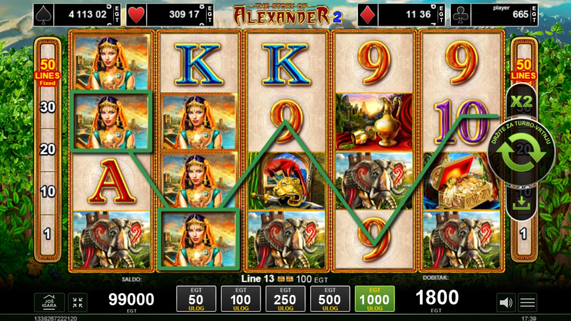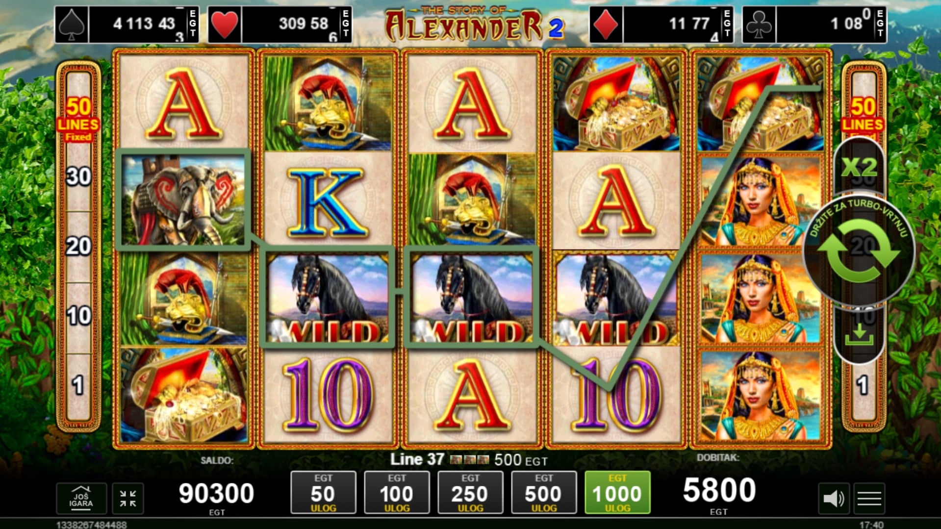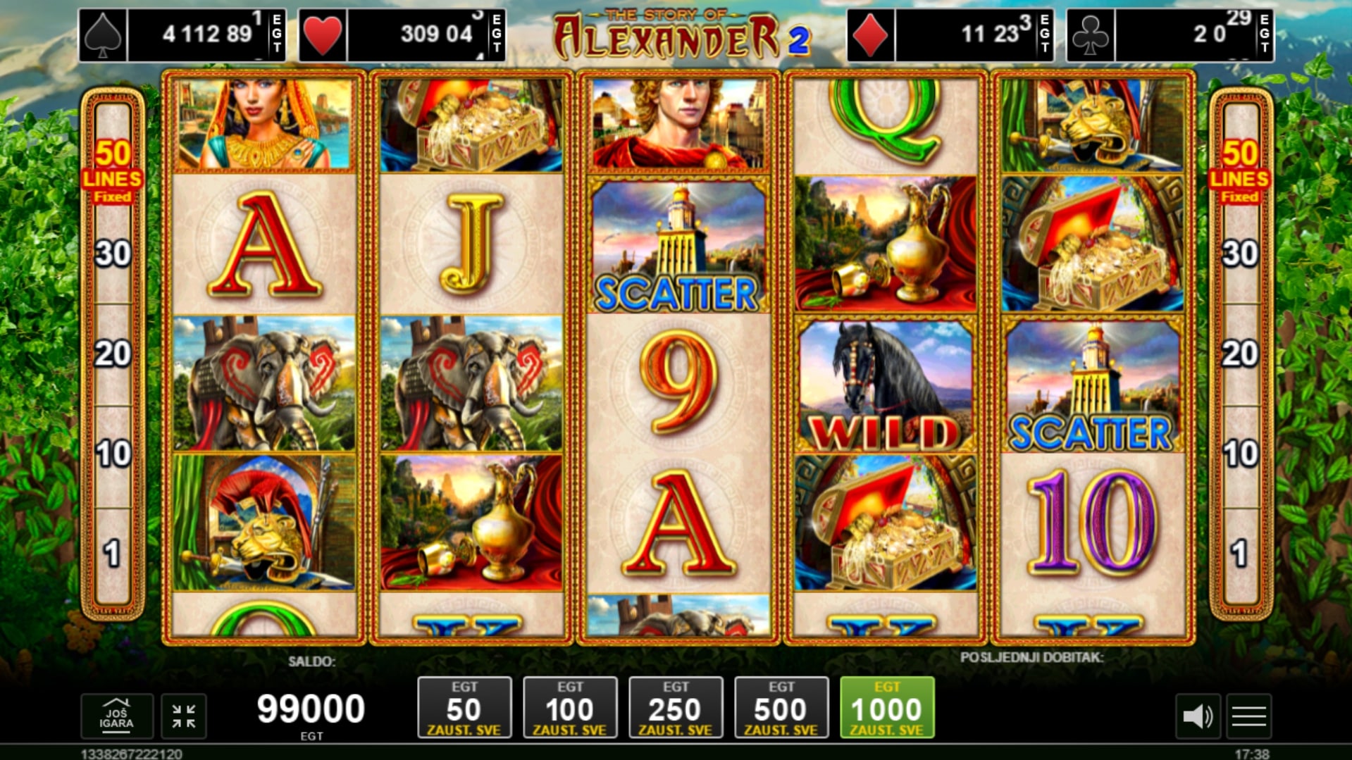 The Story of Alexander II nadogradnja je koja originalnom slotu daje novi sjaj. Igra igrača vodi u pustolovinu ispunjenu nepredvidivošću i trijumfom, a najviše vrijede ilustracije Aleksandra i Kleopatre. Wild po običaju mijenja druge simbole, a simbol Scattera koji predstavlja Aleksandrijski svjetionik vodi igrača do besplatnih vrtnji i vrhunskih prilika za dobitke. Unutar vrtnji Wild simboli ostaju zalijepljeni za kolut te igraču daju mogućnost epskih uspjeha. Zavrti kolute u igri The Story of Alexander II te uroni u pustolovinu s Aleksandrom Velikim!