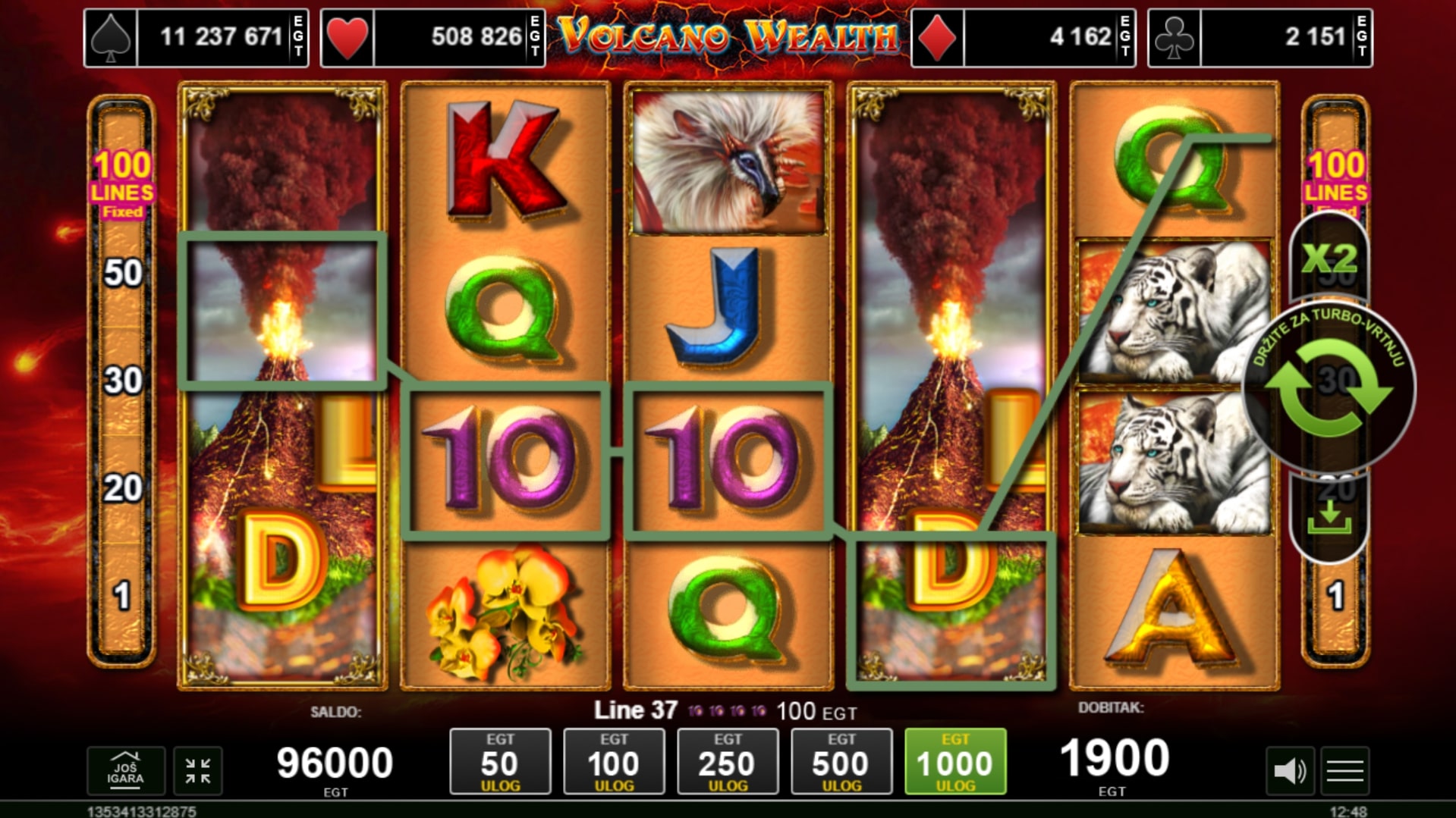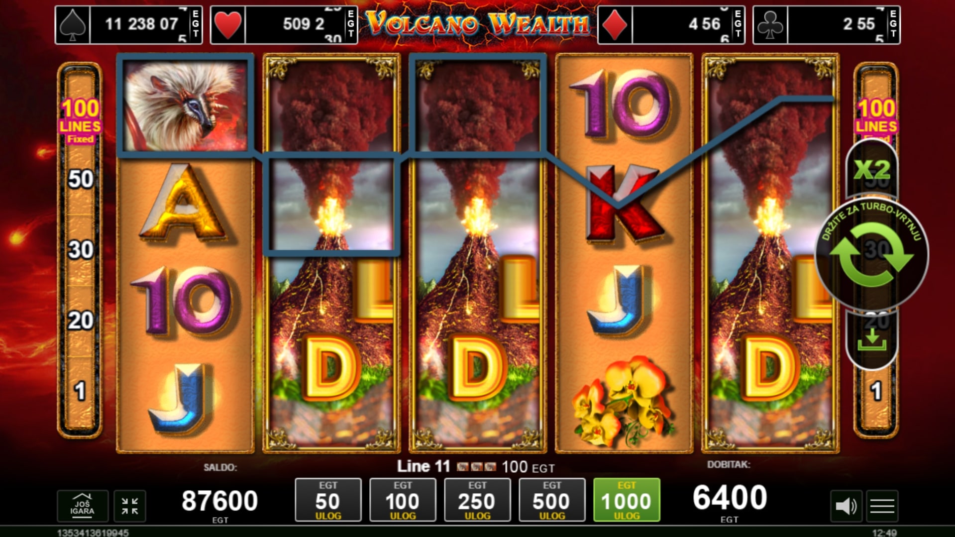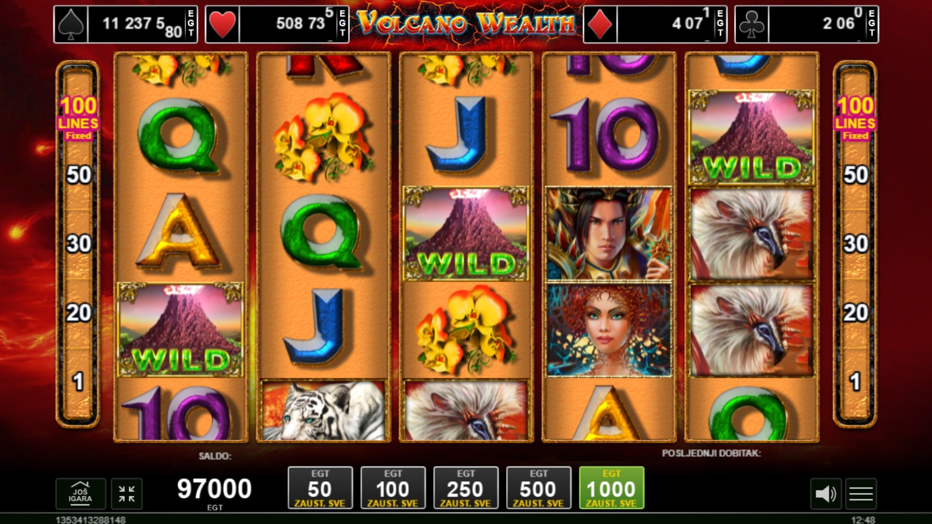 Volcano Wealth tematska je slot igra koja vodi igrača u svijet vulkana gdje vatra i kaos stoje na putu do vrućih dobitaka. Najviše isplaćuju simboli ratnika, dok simbol vulkana djeluje kao zamjena za druge simbole, dok stablo može igrača odvesti do besplatnih vrtnji. U slučaju dobitka, igrač ga može pokušati 'poduplati' pogađanjem boje karte okrenute licem prema dolje, riskirajući gubitak uloženog. Zaigraj Volcano Wealth te osvoji vatrene nagrade!