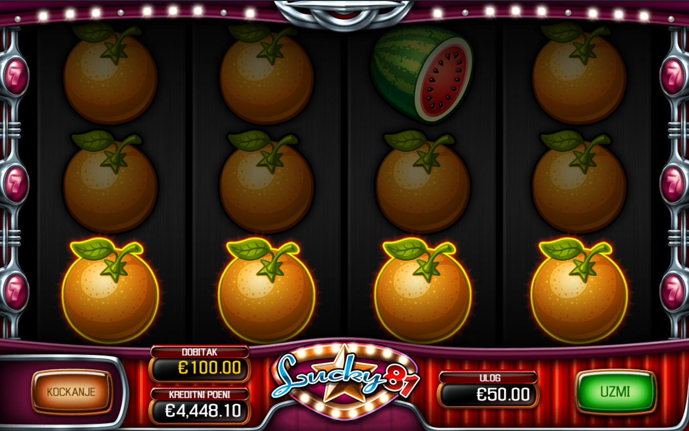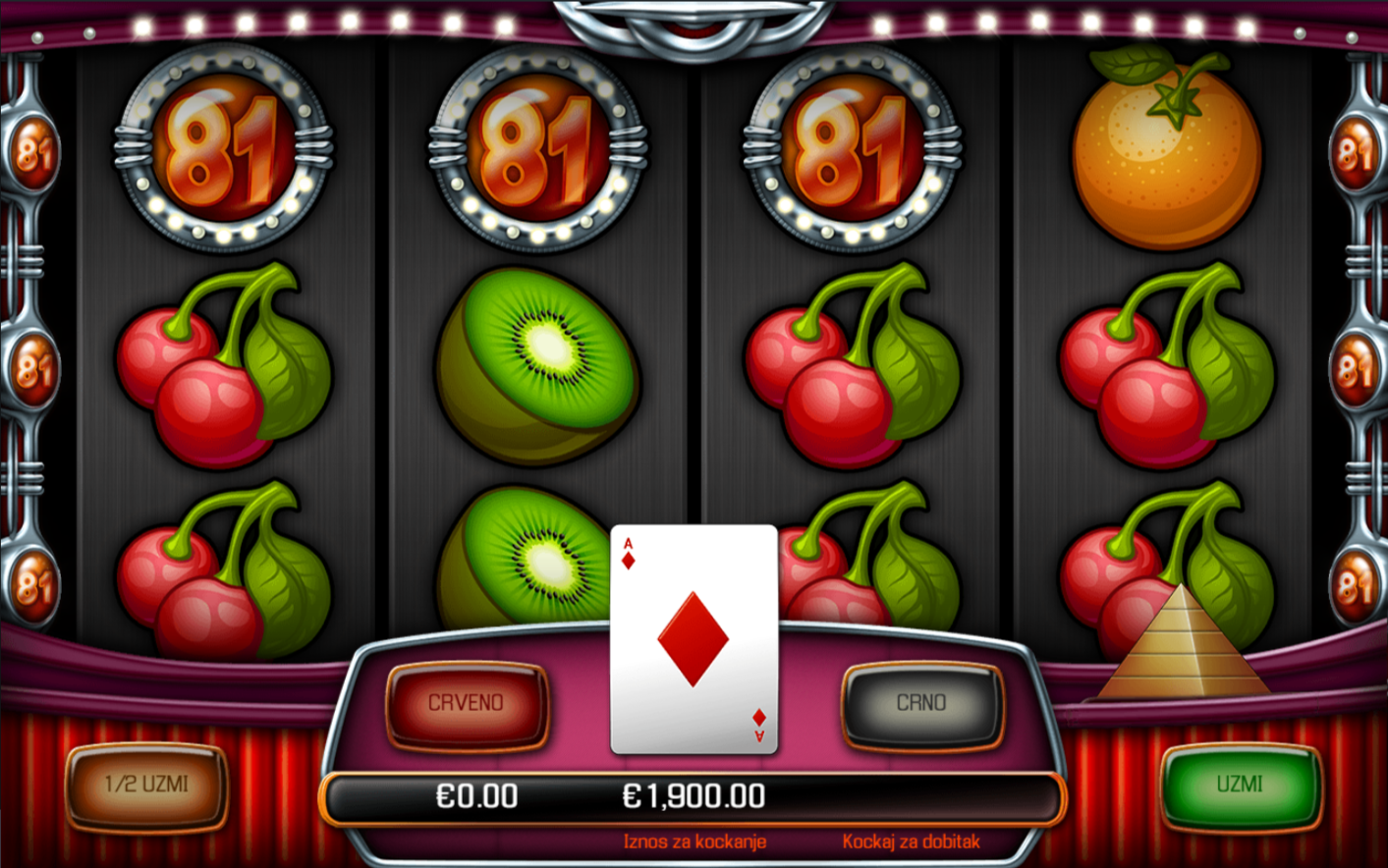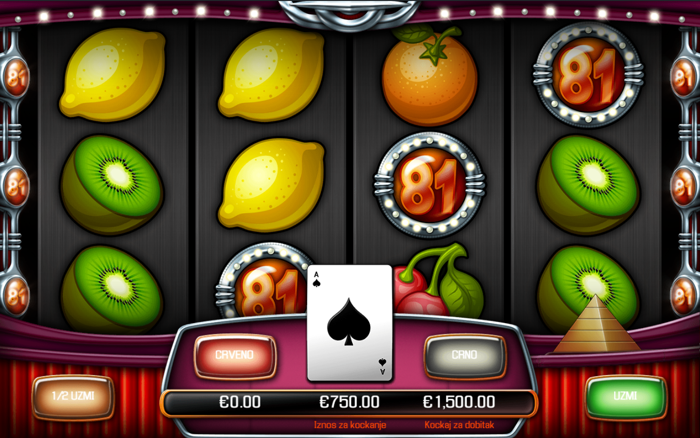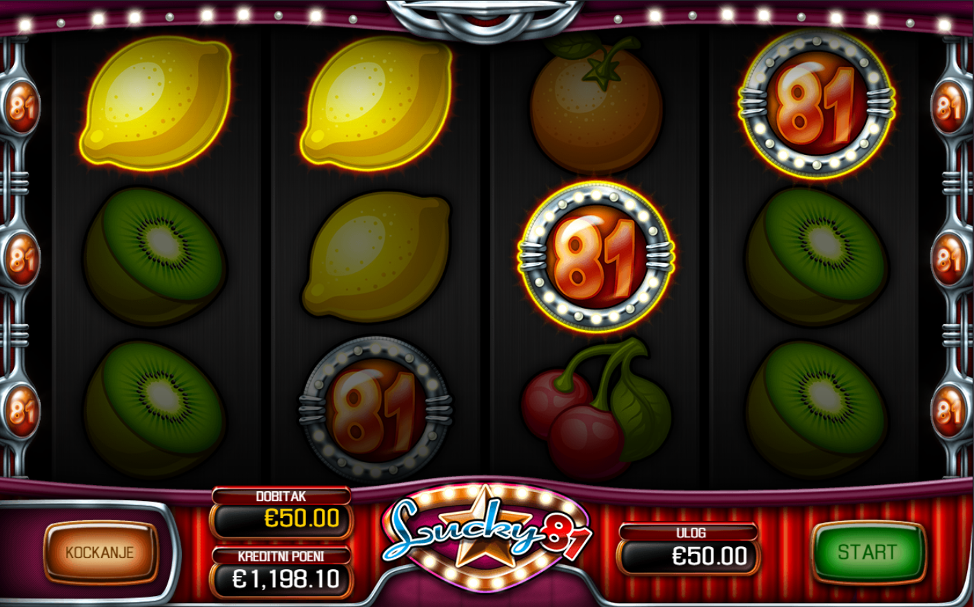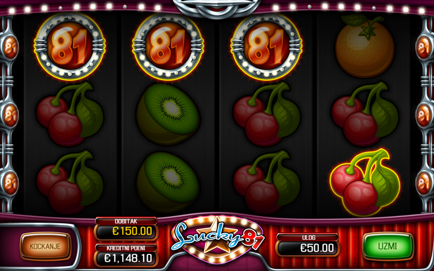 U igri Lucky 81, uživat ćeš u živopisnim simbolima i fantastičnim bonusima. Cilj igre je zavrtjeti kola i dobiti tri istovjetna simbola u barem jednoj od 27 unakrsnih isplatnih linija. Ovisno o simbolima i dobitnim kombinacijama, dobitak se dodaje kreditnim poenima. Wild simboli zamjenjuju sve ostale simbole, povećavajući tvoje šanse za stvaranje dobitnih linija. Uroni u svijet sočnih plodova i osvoji velike nagrade!