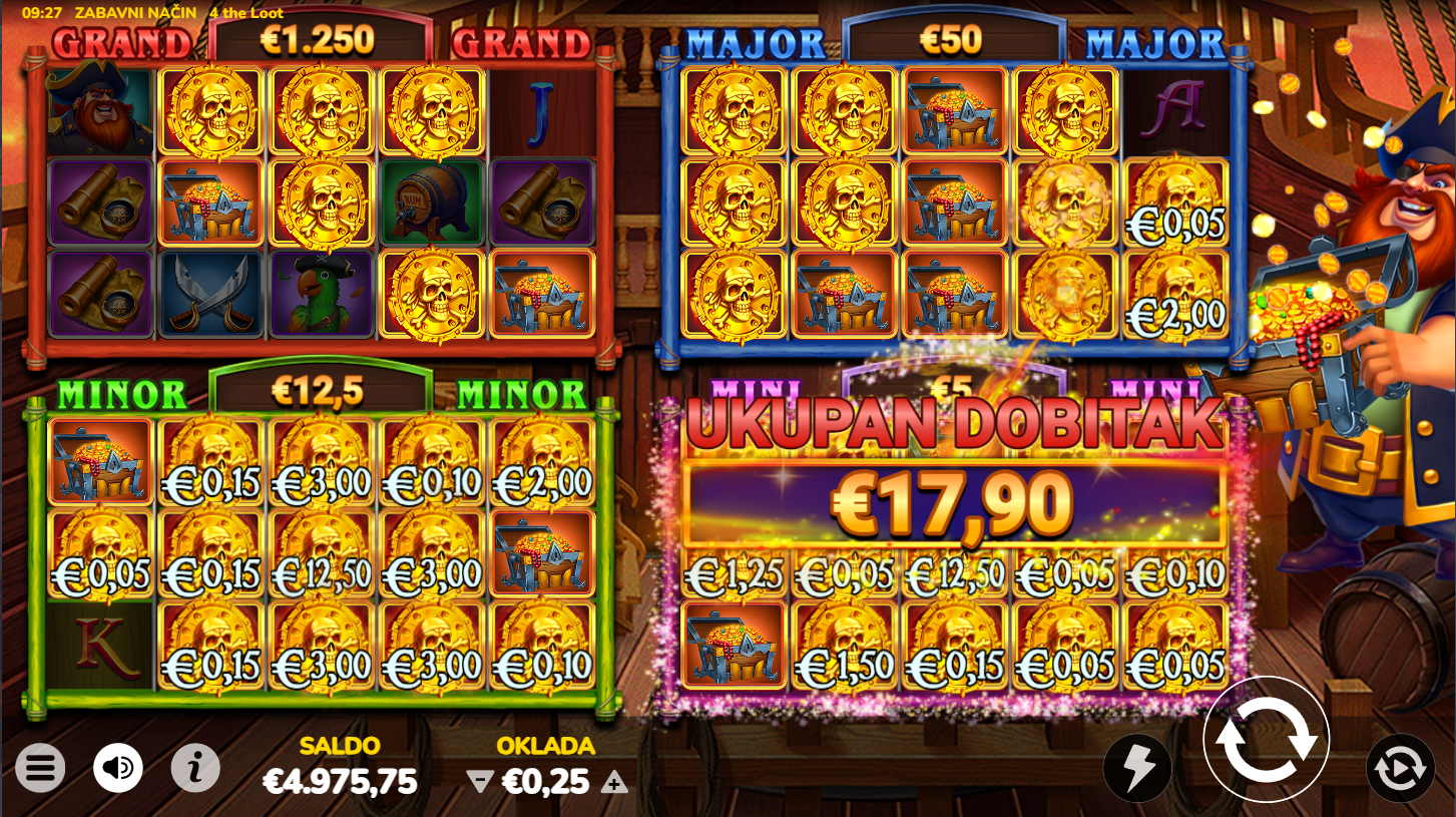 4 The Loot dolazi s RTP-om do 95.43% i srednjom volatilnošću, što znači da igru držiš napetom bez da stalno gubiš kompas. Dobici dolaze ritmično, a kad pogodiš bonus, osjećaj je kao da si upravo otvorio škrinju s blagom! Pravi piratski balans između uzbuđenja i održive igre. Taman za one koji vole akciju, ali i imati kontrolu.