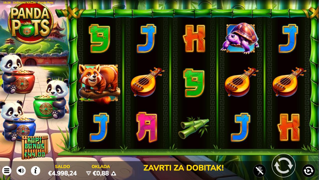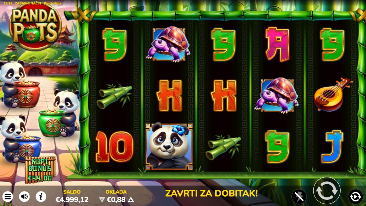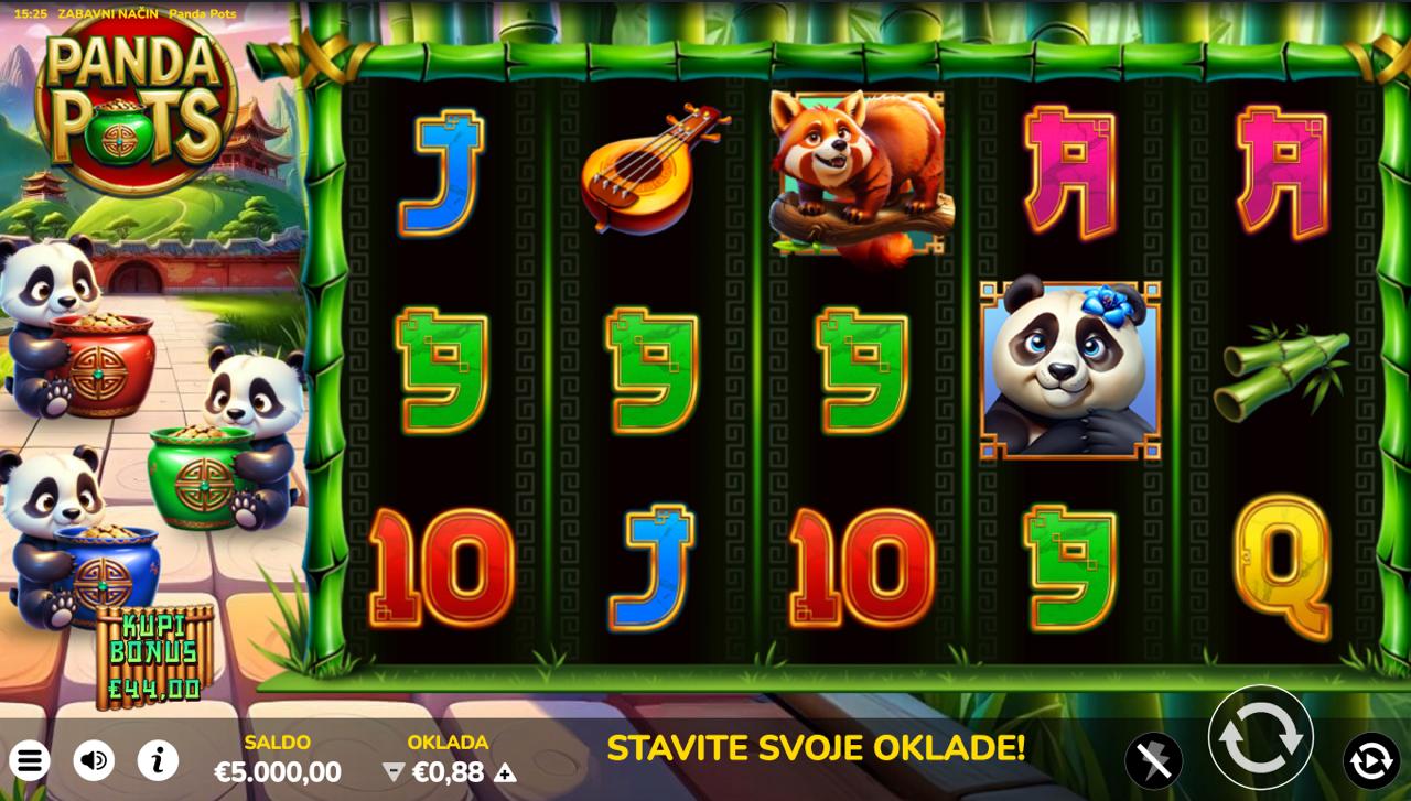 Panda Pots je šarmantna i razigrana slot igra providera Oryx koja vodi igrače u svijet pandi, sreće i zlatnih nagrada. Vizualno privlačna grafika, topla atmosfera i jasni simboli čine ovu igru savršenim izborom za opušteno, ali uzbudljivo igranje. Svaki spin donosi novu priliku za dobitak, a tematski elementi dodatno pojačavaju osjećaj zabave i lakoće igre. Iako nema jackpot, Panda Pots nudi dovoljno potencijala za solidne i nagrađujuće isplate.