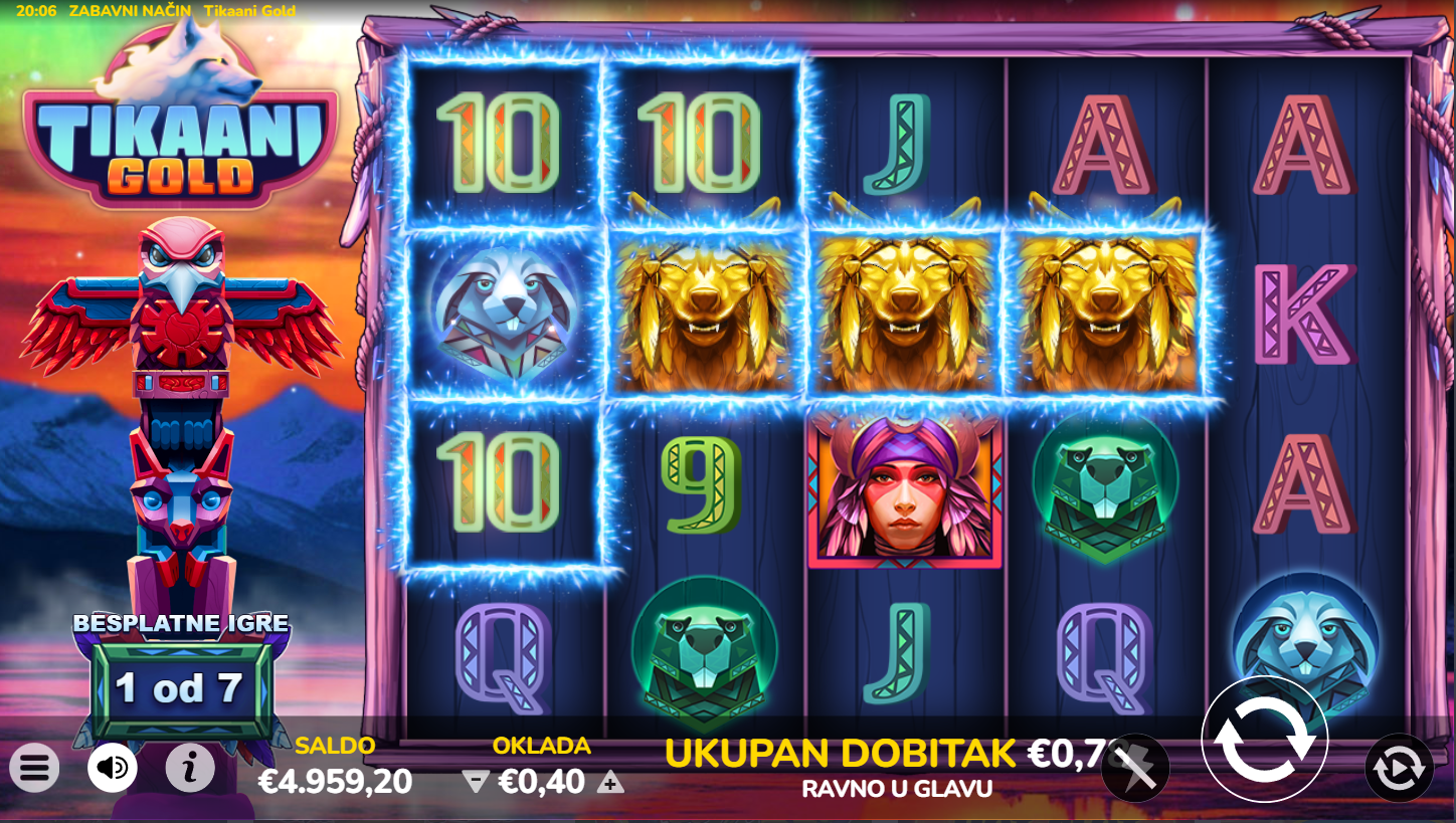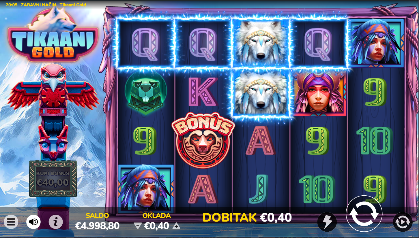 Tikaani Gold ima RTP od oko 95.49% i srednju volatilnost, što znači ravnotežu između čestih dobitaka i većih iznenađenja. Igra je idealna za one koji vole uzbudljiv ritam bez prevelikog rizika. Doživljaj je glatko tempiran, baš kao elegantni koraci vuka po snijegu. Kad sreća zareži, znaš da dolazi pravi trenutak!