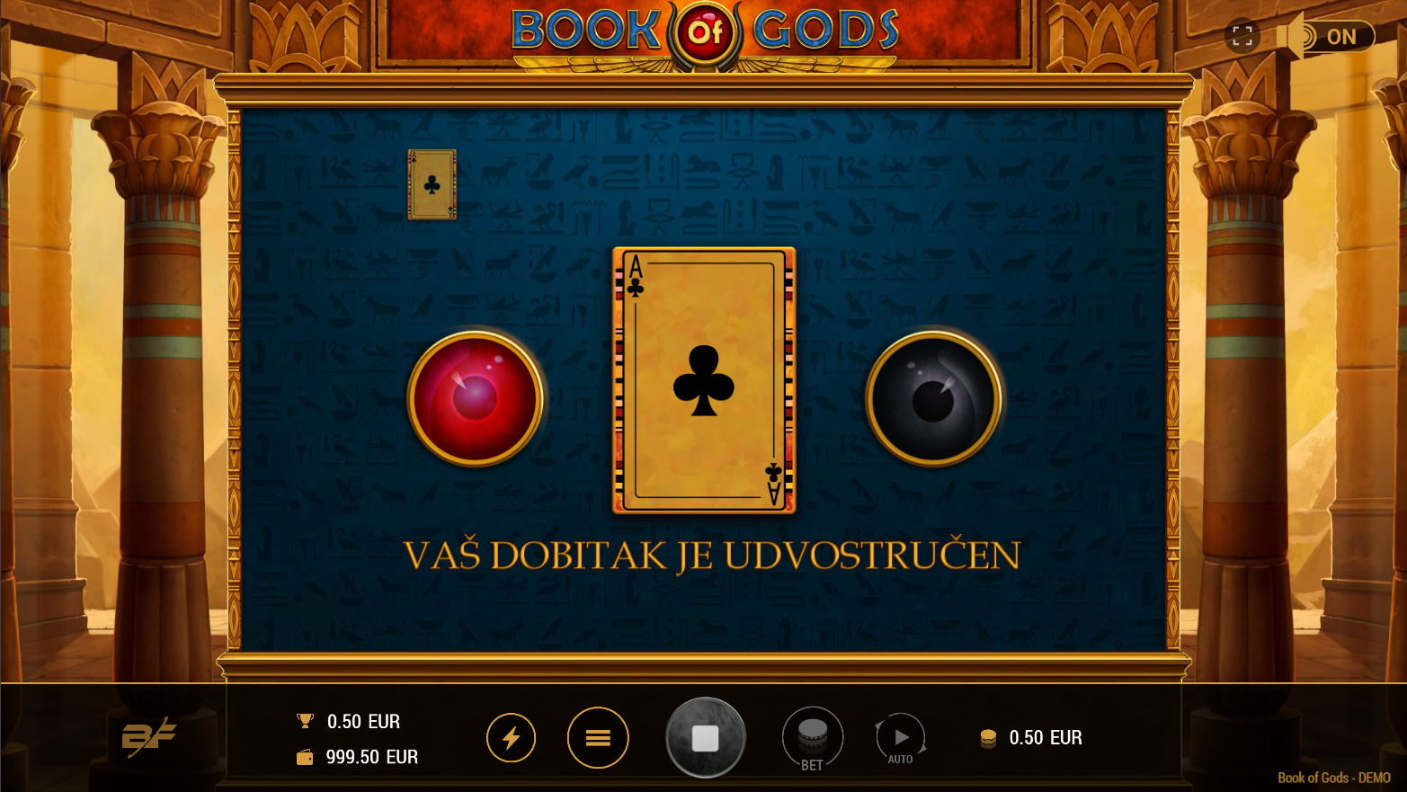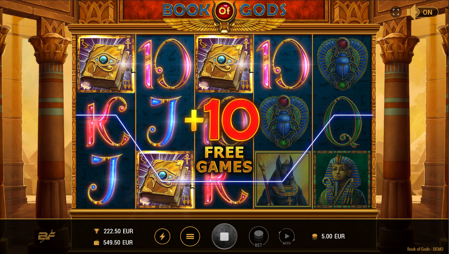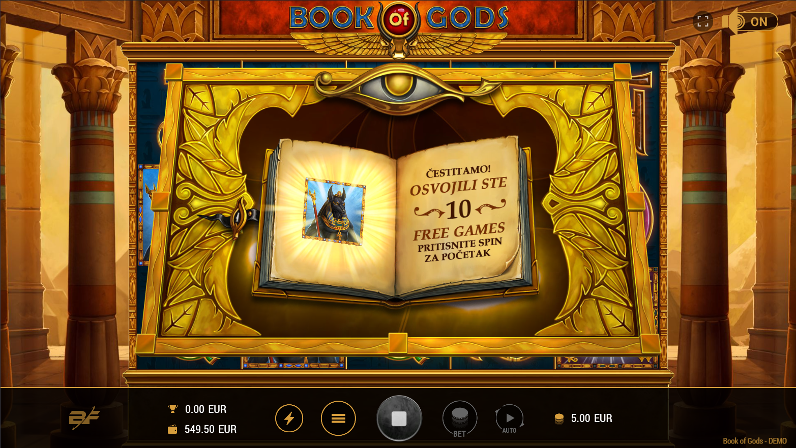 U igri Book of Gods, uživat ćeš u raznolikim bonusima i šarenim simbolima. Ova igra s pet bubnjeva, tri reda i 10 dobitnih linija nudi uzbudljive mogućnosti za dobitak uz fantastične multiplikatore i velike jackpotove. Cilj igre je složiti što je moguće više identičnih simbola uzduž dobitne linije. Dobitne kombinacije počinju na prvom bubnju na lijevoj strani i protežu se uzduž aktivne dobitne linije do zadnjeg bubnja na desnoj strani. Simbol SCATTER aktivira besplatne igre (FREE GAMES) s dodatnim simbolom EXTRA SCATTER, koji zamjenjuje sve ostale simbole na cijelom bubnju, pružajući dodatne šanse za velike dobitke. Uživaj u brzoj akciji i iskoristi sve mogućnosti koje nudi Book of Gods.