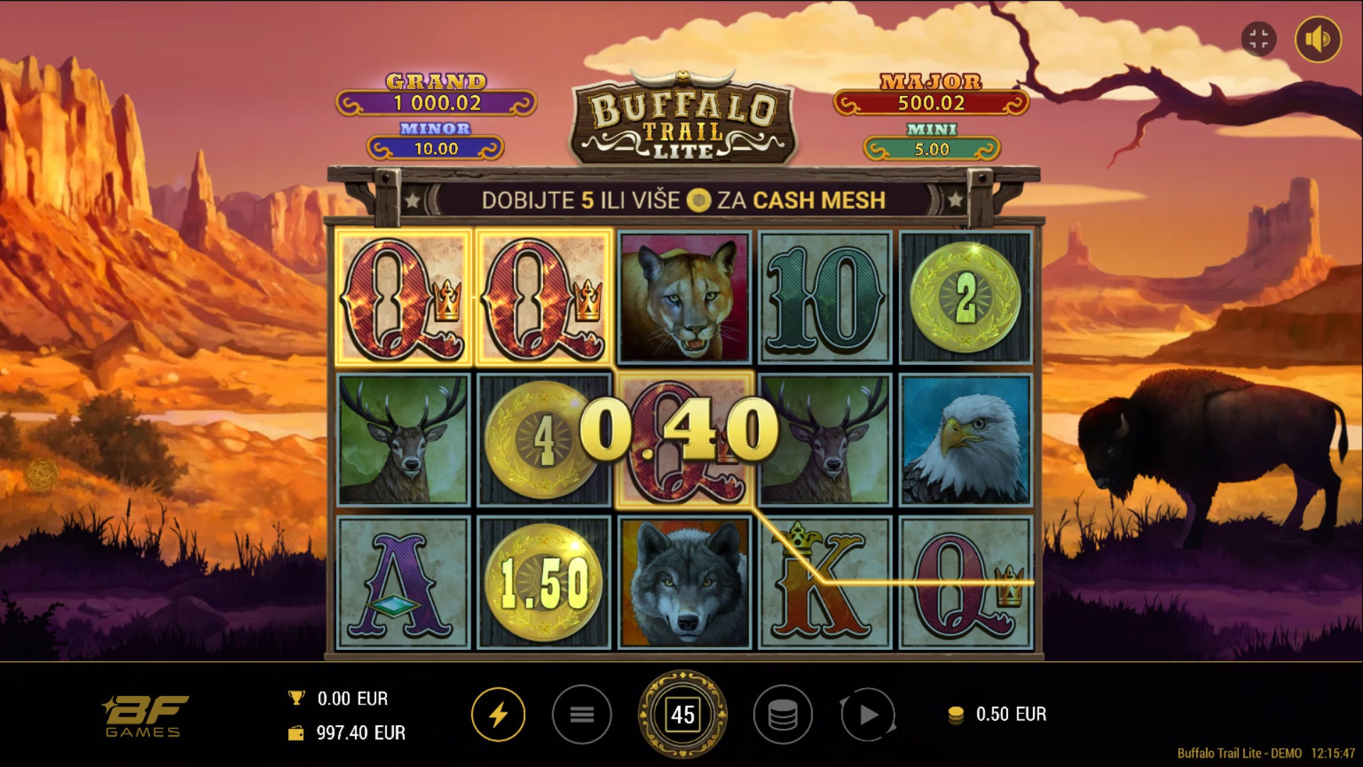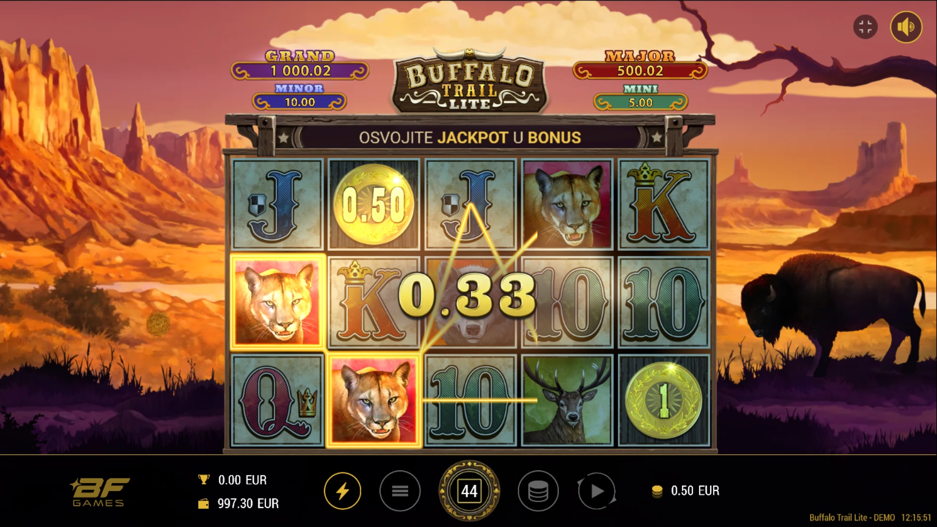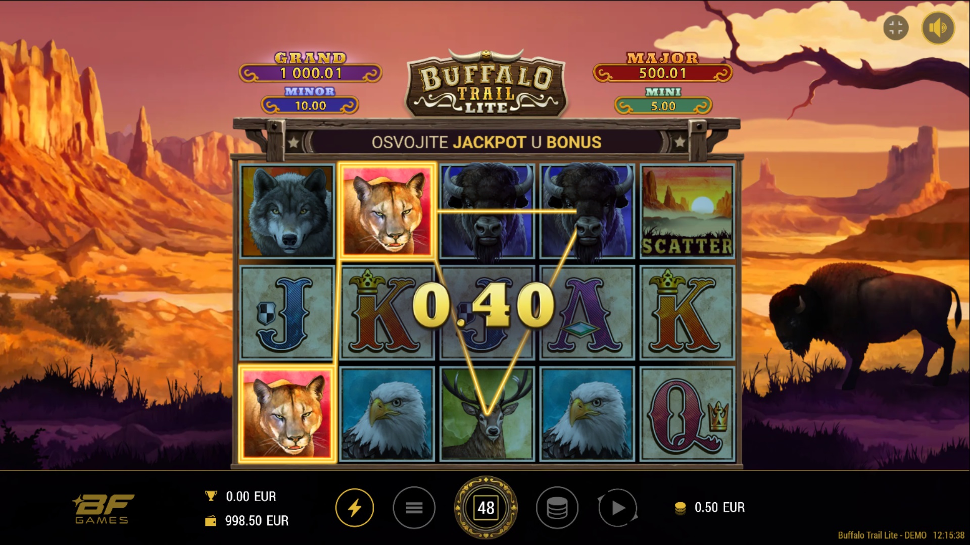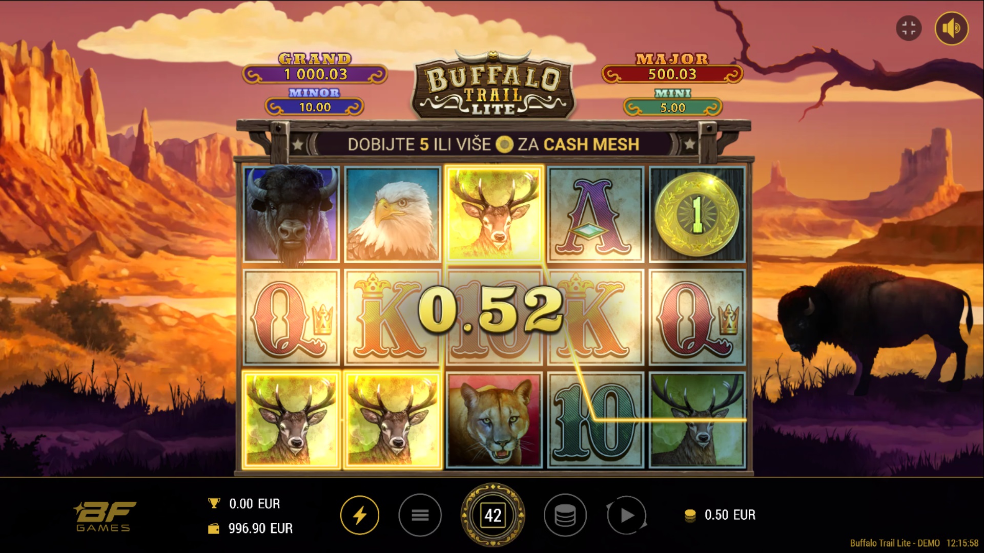 Buffalo Trail Lite donosi te pravo u srce divljine, gdje te čekaju simboli moćnih životinja, velike nagrade i uzbudljiva akcija na 5 bubnjeva i