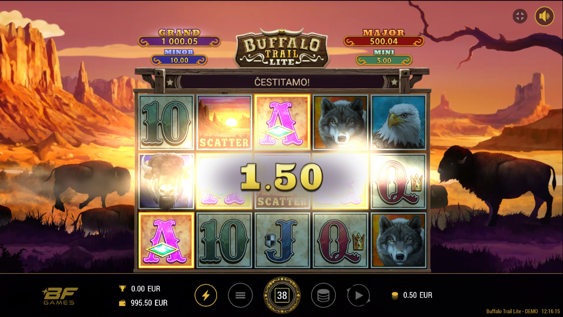 besplatne vrtnje koje možeš ponovno aktivirati, a u njima se simboli manje vrijednosti ne pojavljuju, što dodatno povećava šanse za dobitak. Vizualno atraktivna i bogata bonusima, Buffalo Trail Lite je idealna za sve koji vole igru s puno dodatnih mogućnosti!