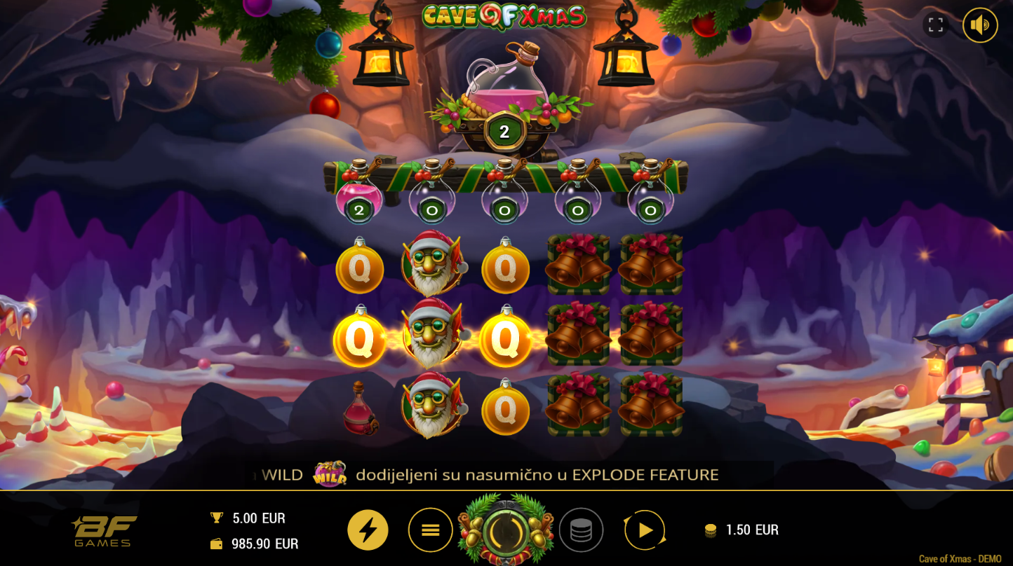 Dobrodošli u Cave of Xmas, mjesto gdje goblini slave Božić na svoj način, duboko u snježnoj pećini punoj blaga! Ova slot avantura od BFGames kombinira praznični duh s eksplozivnim bonusima i šarenim animacijama. Uz svaki spin, osjećaj je kao da otvarate poklon, možda mali dobitak, a možda i ogroman jackpot! Wild kolone, blistavi Scatteri i gomila zlata čekaju na vas. Igra donosi toplinu praznika, ali i uzbuđenje pravog rudarskog pohoda.