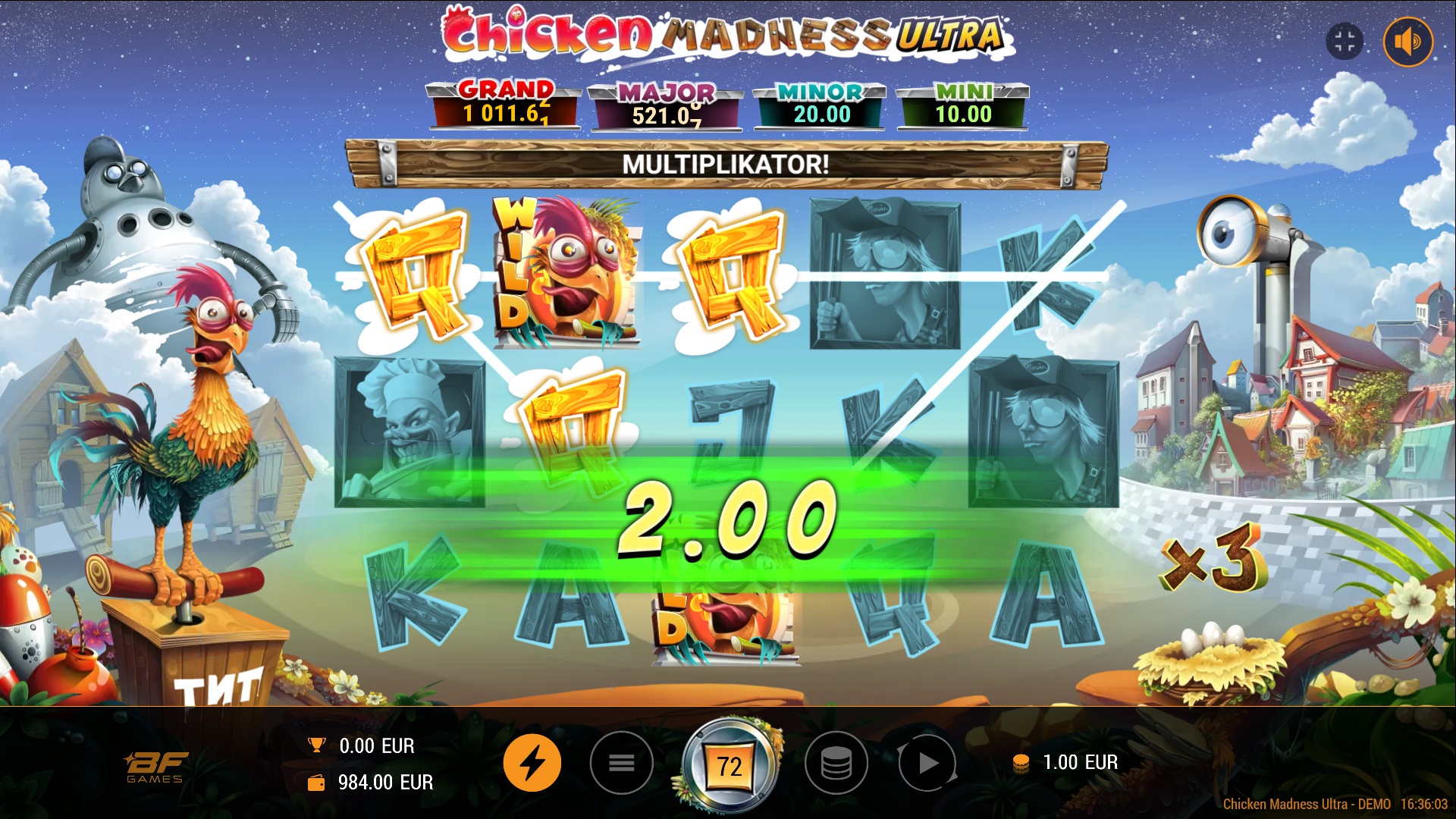 Chicken Madness Ultra ima RTP (Povrat igraču) od 94,06%, što znači da igra nudi solidne šanse za dobitak tijekom igranja. Volatilnost igre je srednja, što znači da možeš očekivati povremene manje dobitke, ali i prilike za veće isplate.
