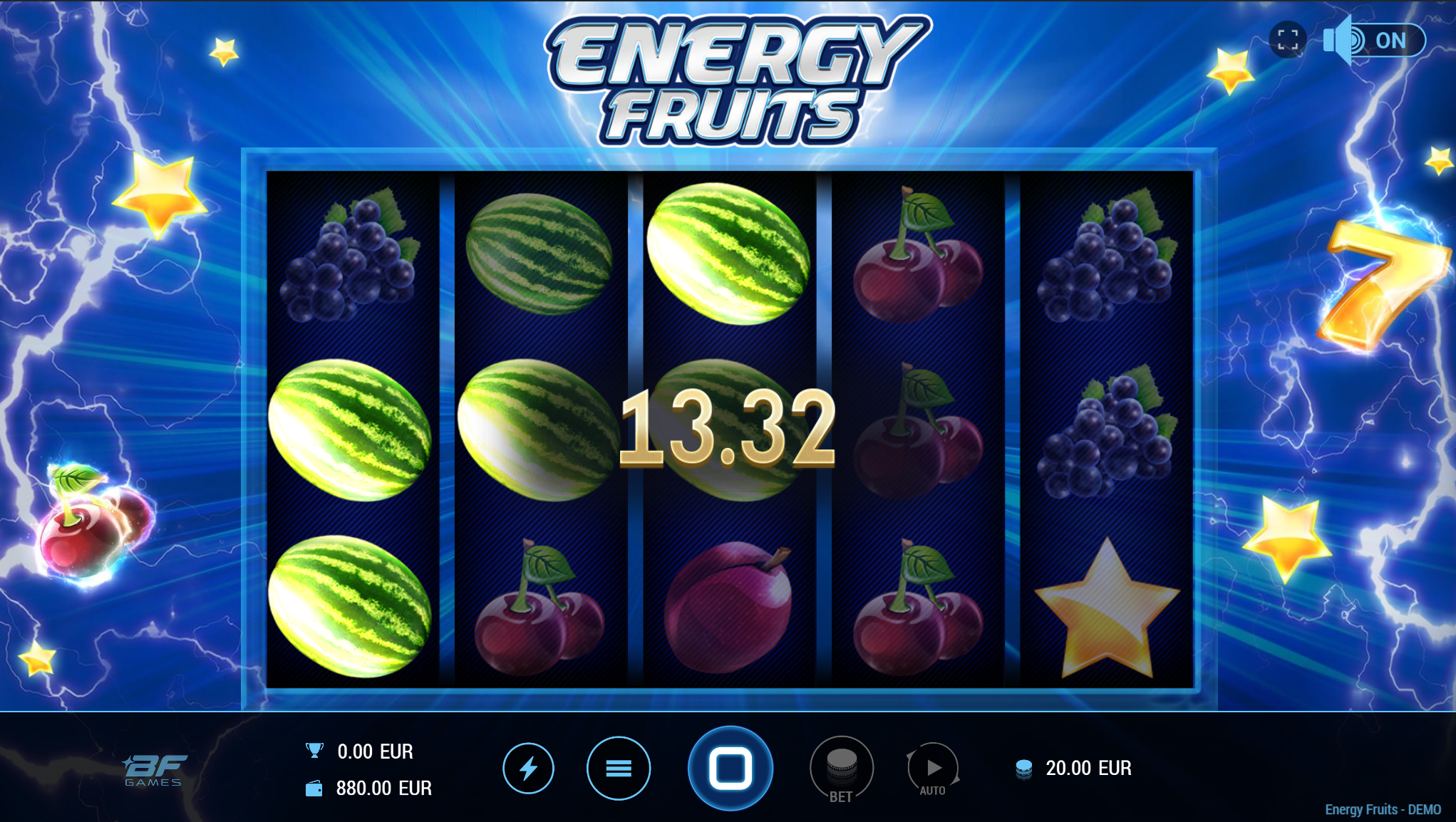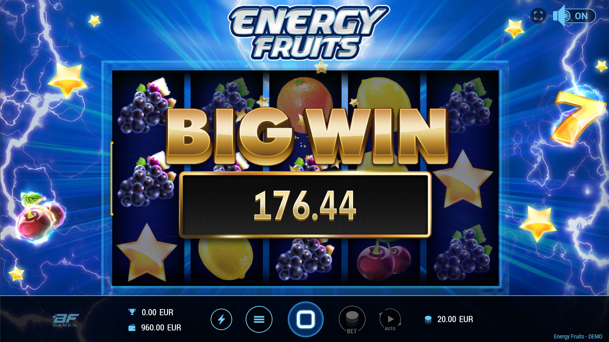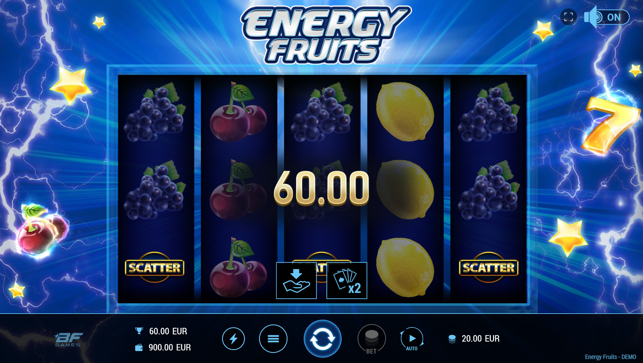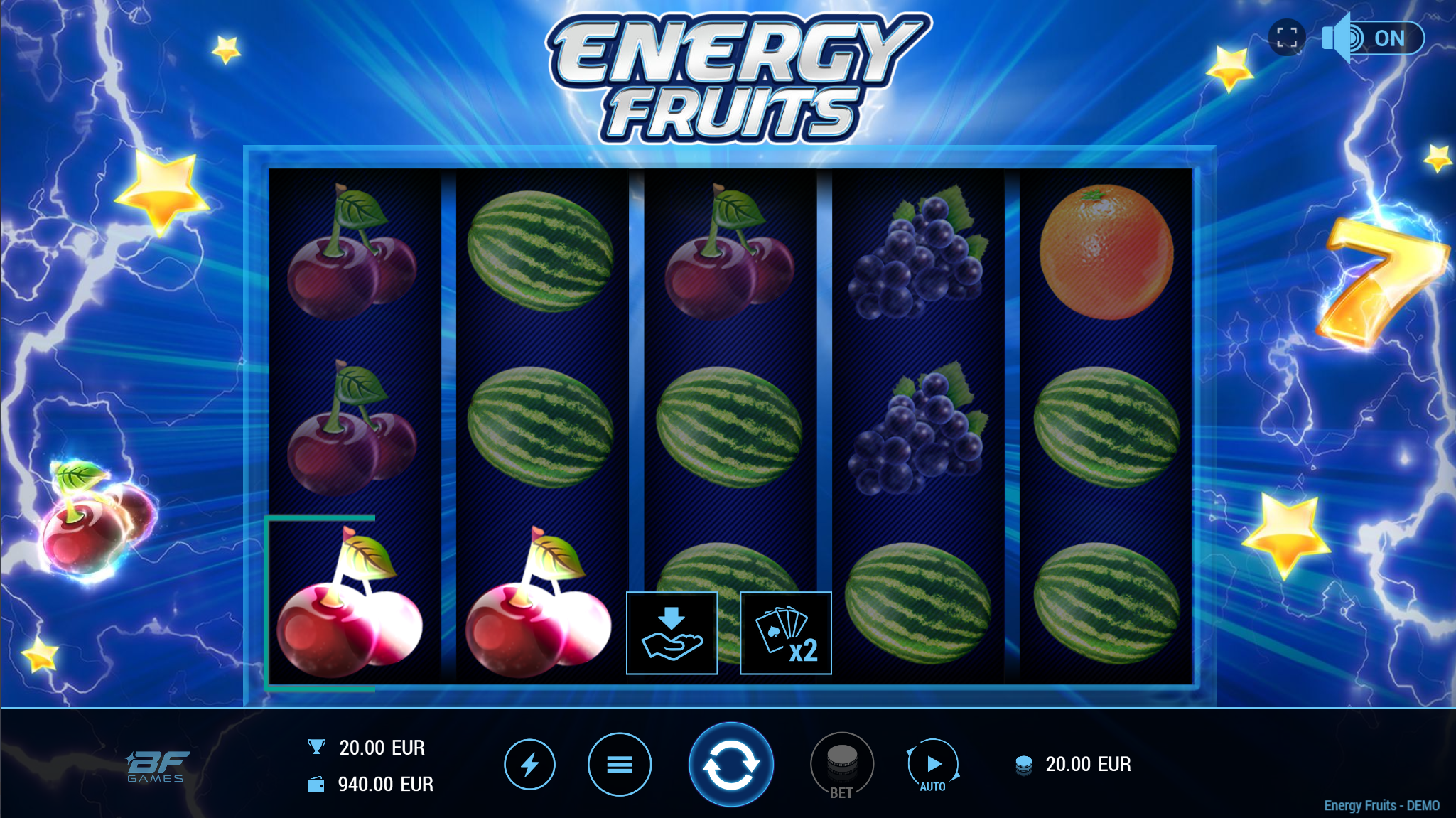 Energy Fruits vodi svoje igrače kroz zabavnu avanturu obogaćenu pažljivo ilustriranim voćnim simbolima uz dodatak zlatnih efekata. Super jednostavan način igranja omogučiti će igračima dugotrajnu zabavu, a kako bi ona također bila i uzbudljiva pobrinuti će se Energy Fruits scatter simboli koji će tvoje dobitke pretvoriti u veće i učestalije. Ako voliš igre koje ti pružaju izvrstan omjer rizika i dobitaka došao si na pravo mjesto! Prepusti se zabavi i užitku te sa sobom odnesi velike dobitke!