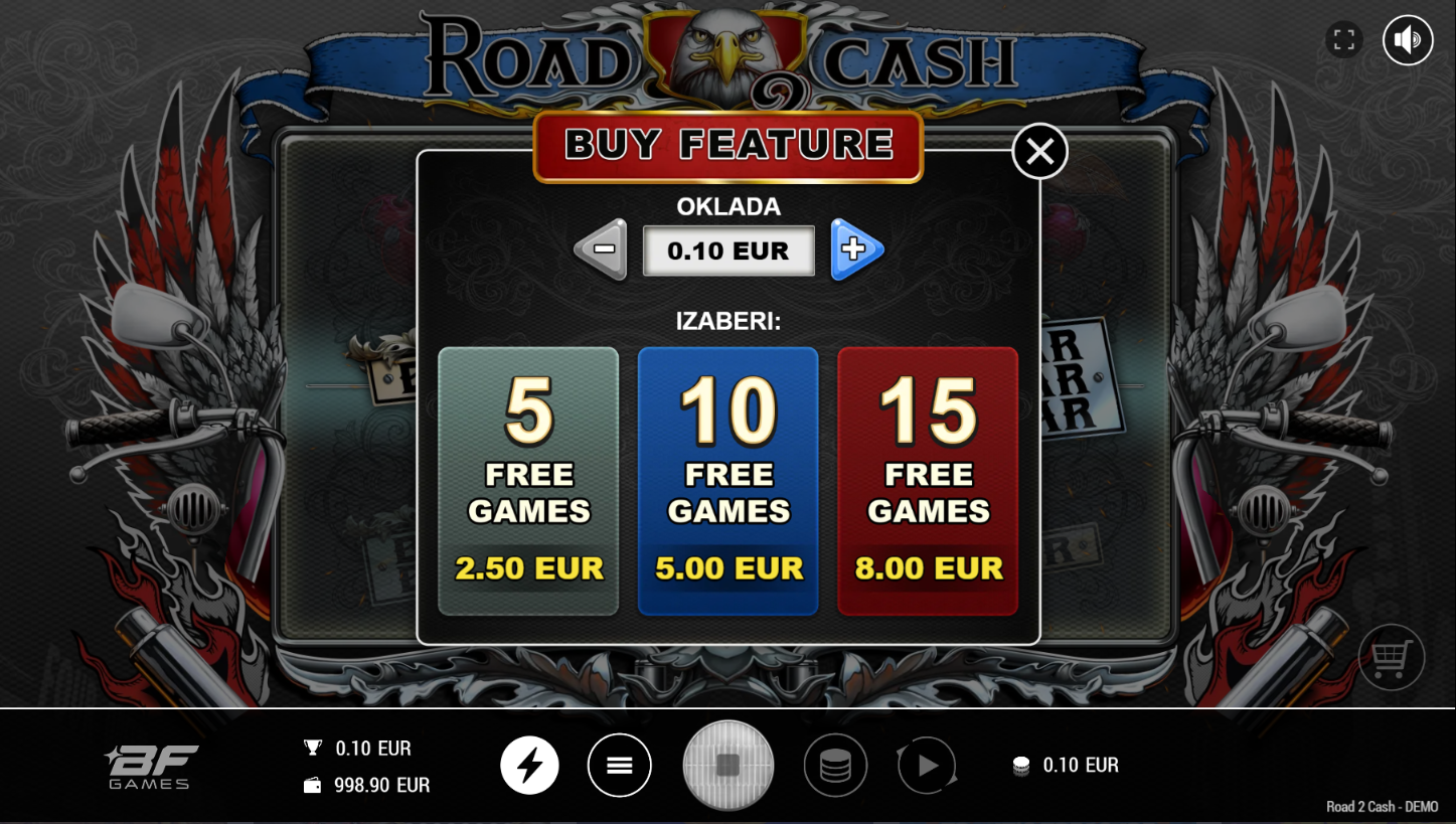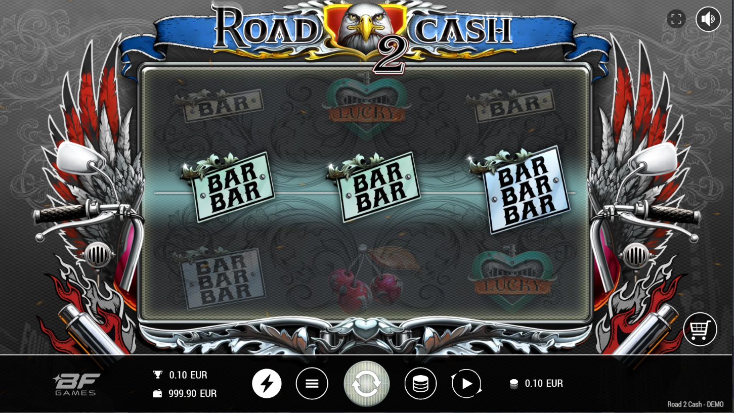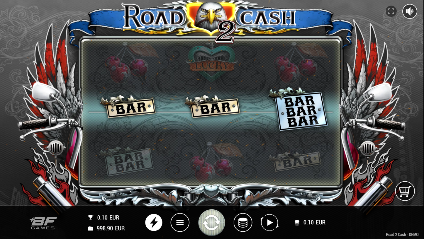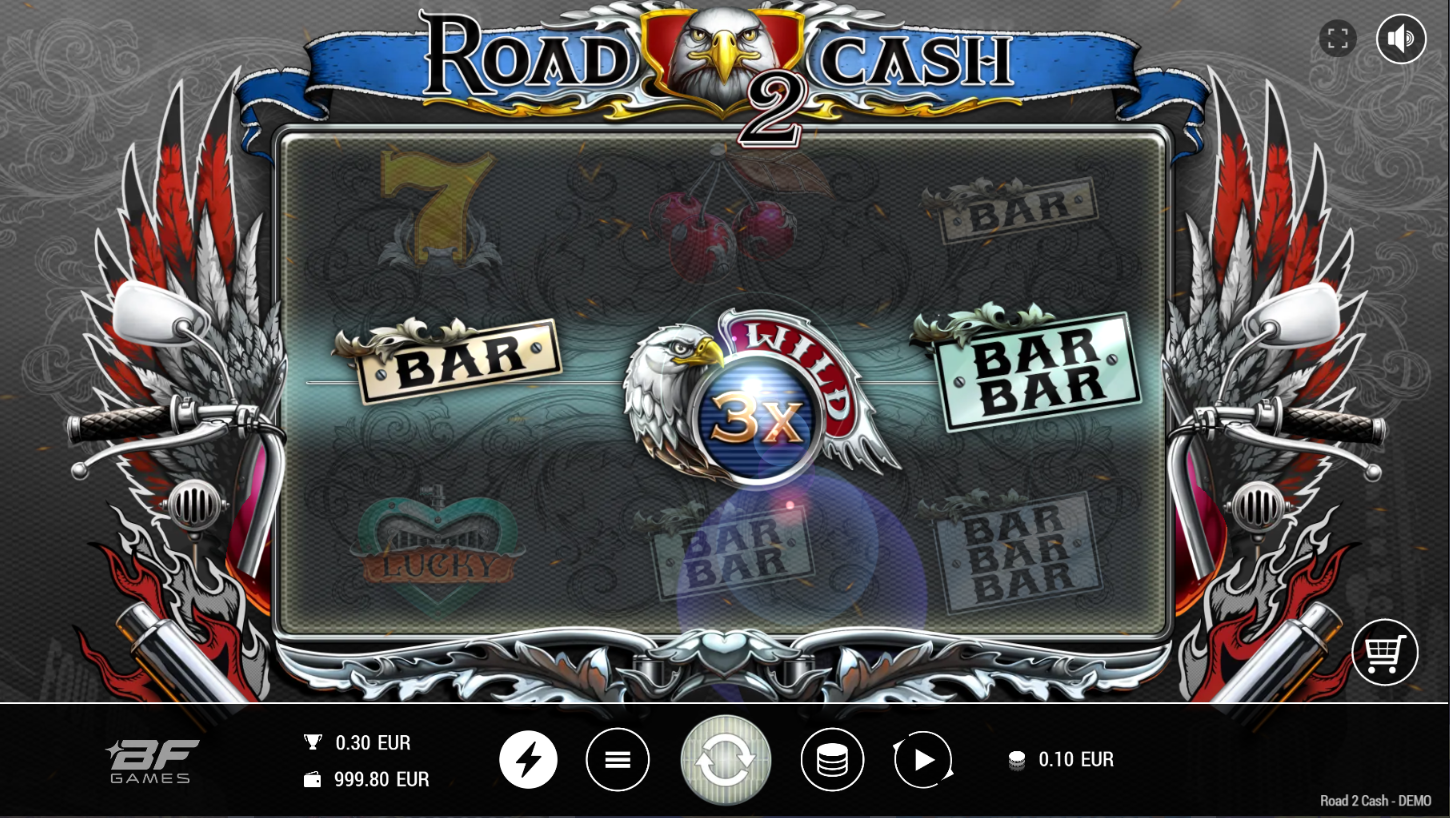 Road 2 Cash, od BF Games, vodi te na uzbudljivu vožnju starinskim slotom u modernom ruhu. Na 3x3 koluta čeka te brza i dinamična akcija s jednom isplatnom linijom. Simboli auta, znakova i wild orlova daju retro vibru, ali s modernim bonusima. Igra spaja jednostavnost klasičnih slotova s eksplozivnim značajkama.