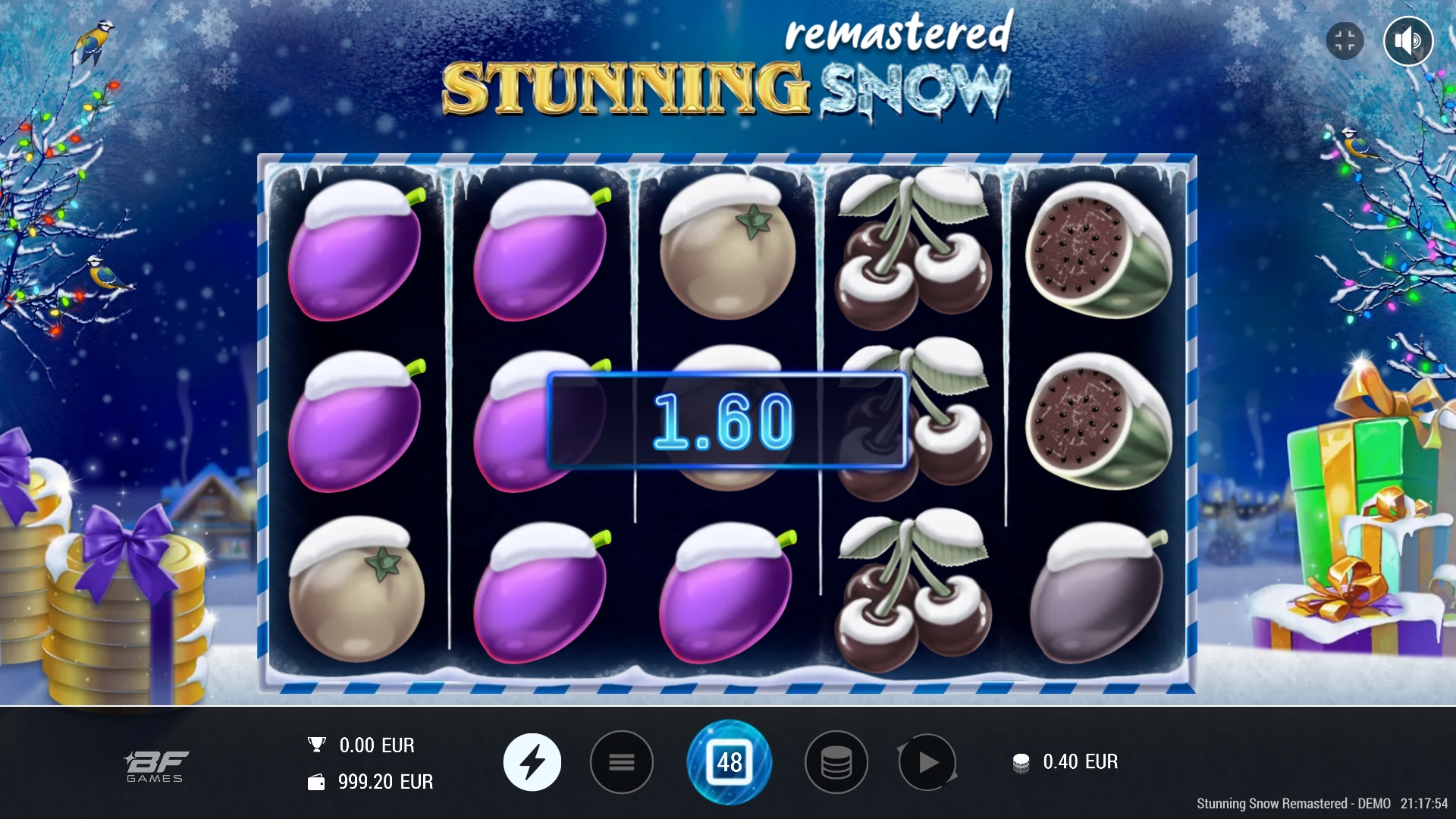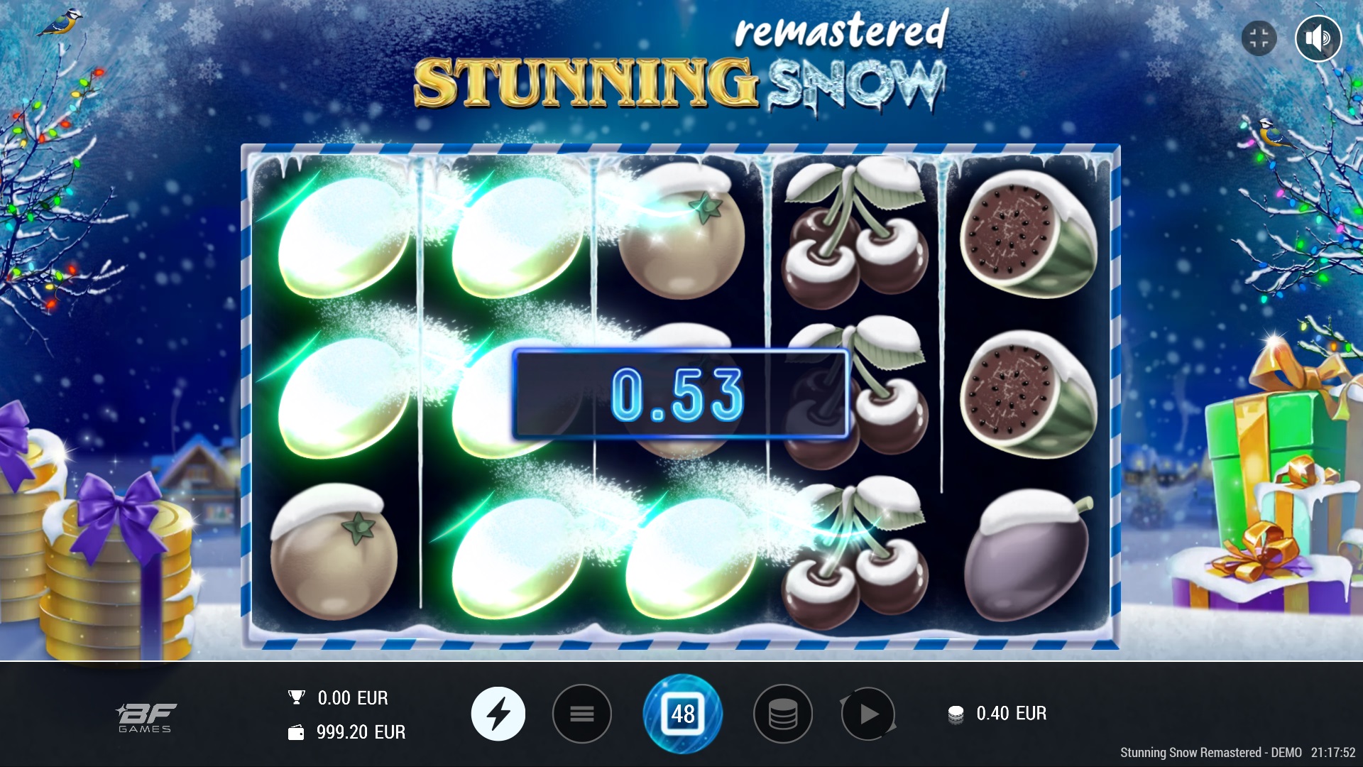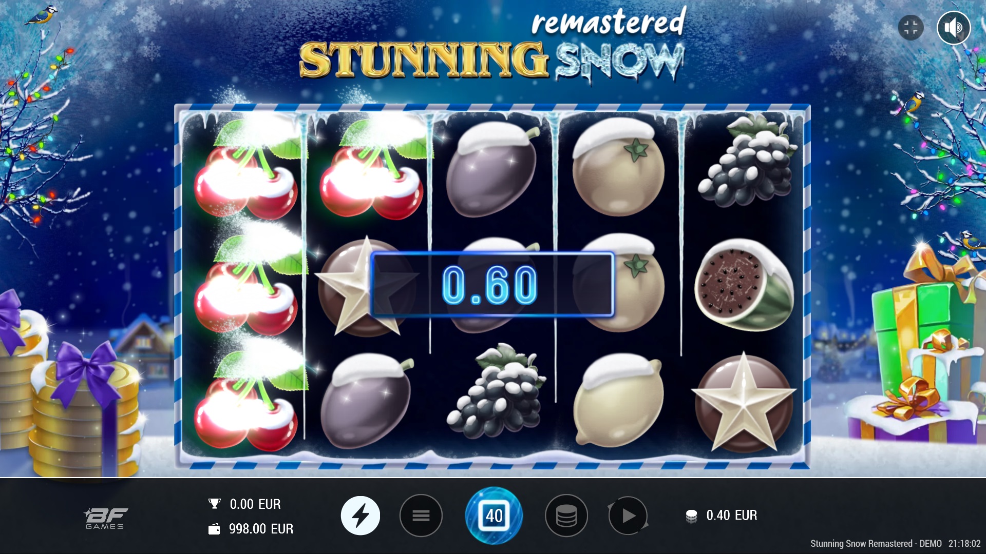 Stunning Snow Remastered ima RTP od 94.25%, što znači da igračima nudi solidne šanse za dobitak tijekom igranja. Volatilnost je srednja, što znači da možeš očekivati česte, ali manje dobitke. Ova igra je savršena za igrače koji vole balans između rizika i nagrada.