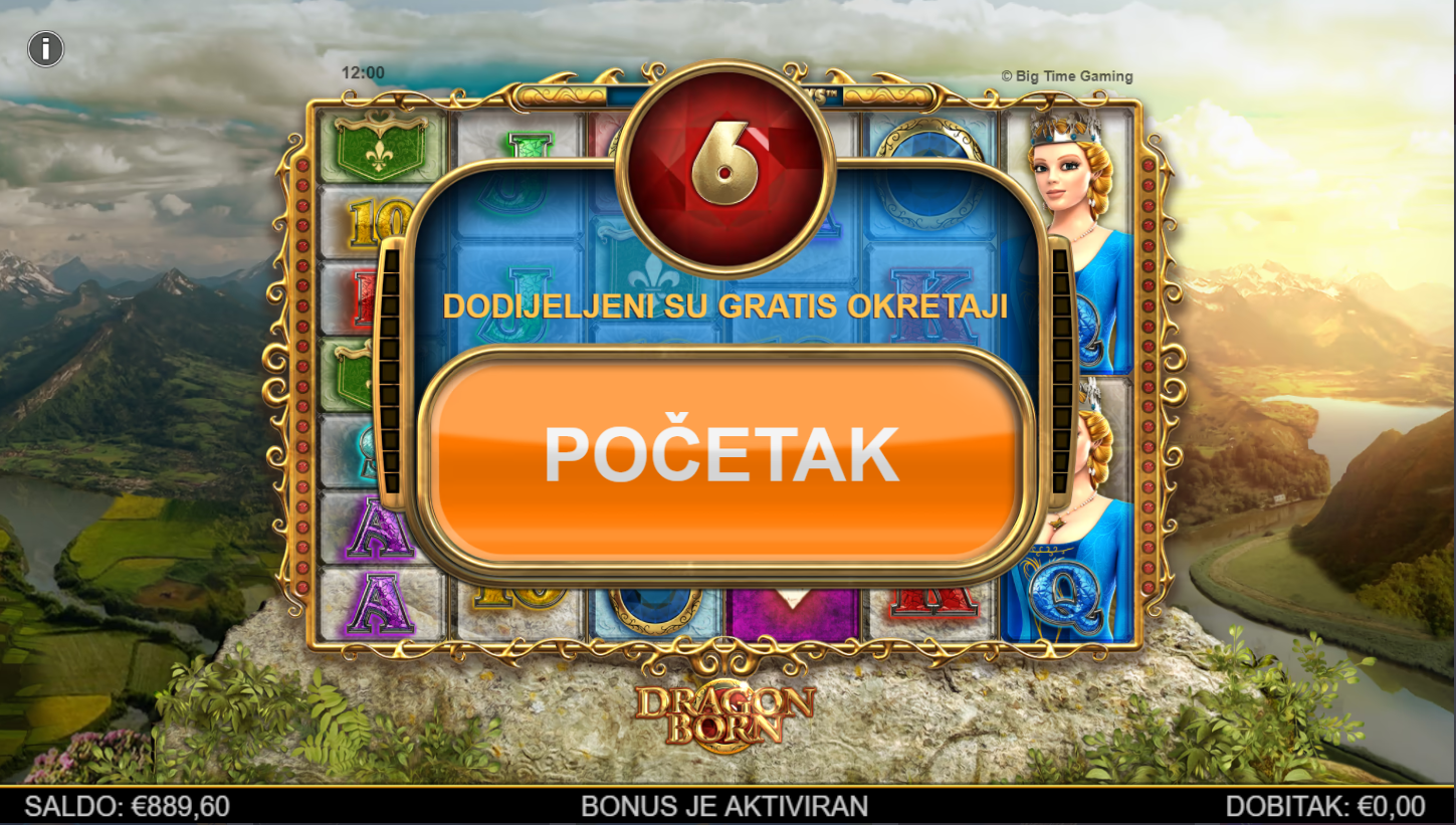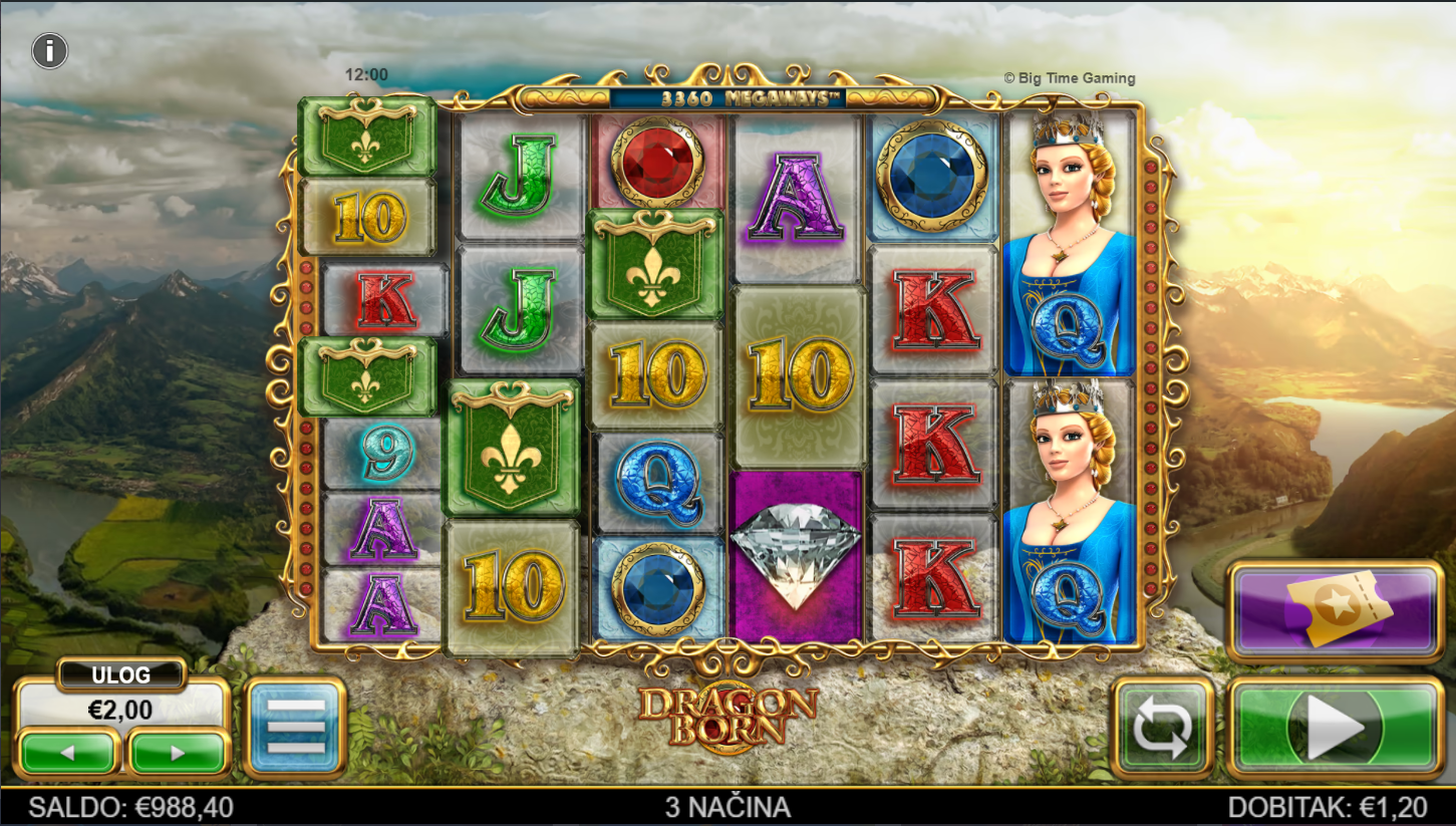 Dragon Born Megaways bio je jedan od prvih Big Time Gaming slotova koji je svijetu predstavio legendarnu Megaways™ mehaniku. Na 6 valjaka s do 117649 načina za dobitak, igra te vodi u svijet vitezova, dragulja i, naravno, moćnog zmaja. Simboli su bogato dizajnirani, a grafika i zvuk stvaraju epsku fantasy atmosferu. Dragon Born je pravi klasik koji i danas oduševljava igrače.