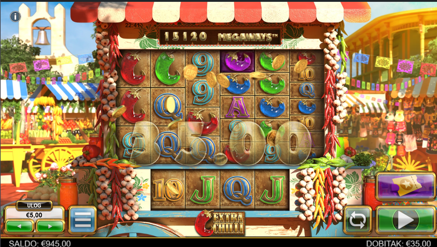 Extra Chilli od BTG donosi pravu vatrenu feštu na bubnjevima. Smještena je u šarenoj meksičkoj tržnici. Ova igra pruža eksplozivnu zabavu uz veselu glazbu i lavinu simbola u jarkim bojama čili papričica. Svaki spin može postati prava meksička avantura dok se bubnjevi šire i stvaraju tisuće načina za uzbuđenje. Zahvaljujući legendarnoj Megaways mehanici, broj isplatnih linija neprestano se mijenja, donoseći svježinu svakom okretaju!