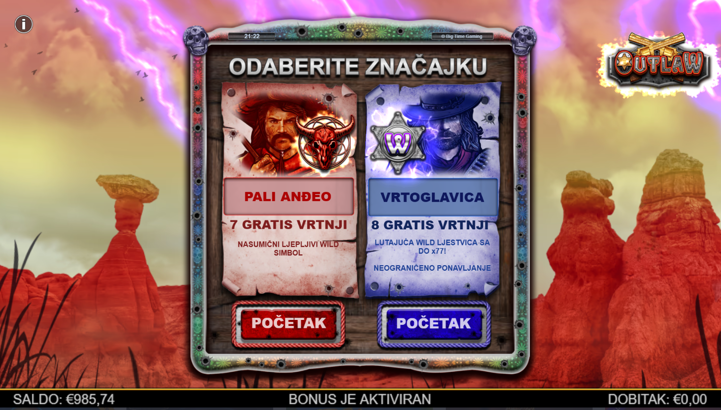 4. Koji su minimalni i maksimalni ulozi u igri Outlaw?
