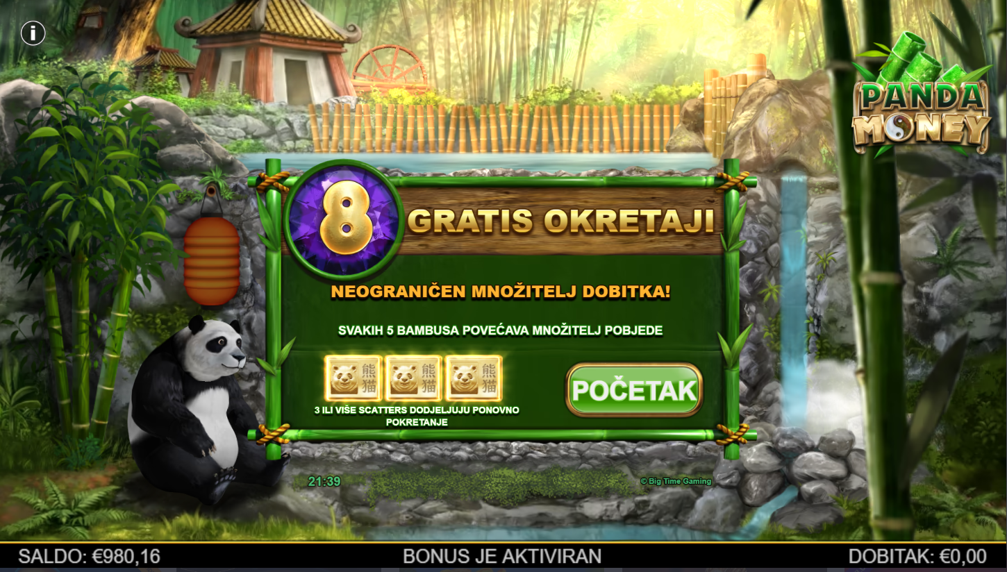 4. Koji su minimalni i maksimalni ulozi u igri Panda Money?